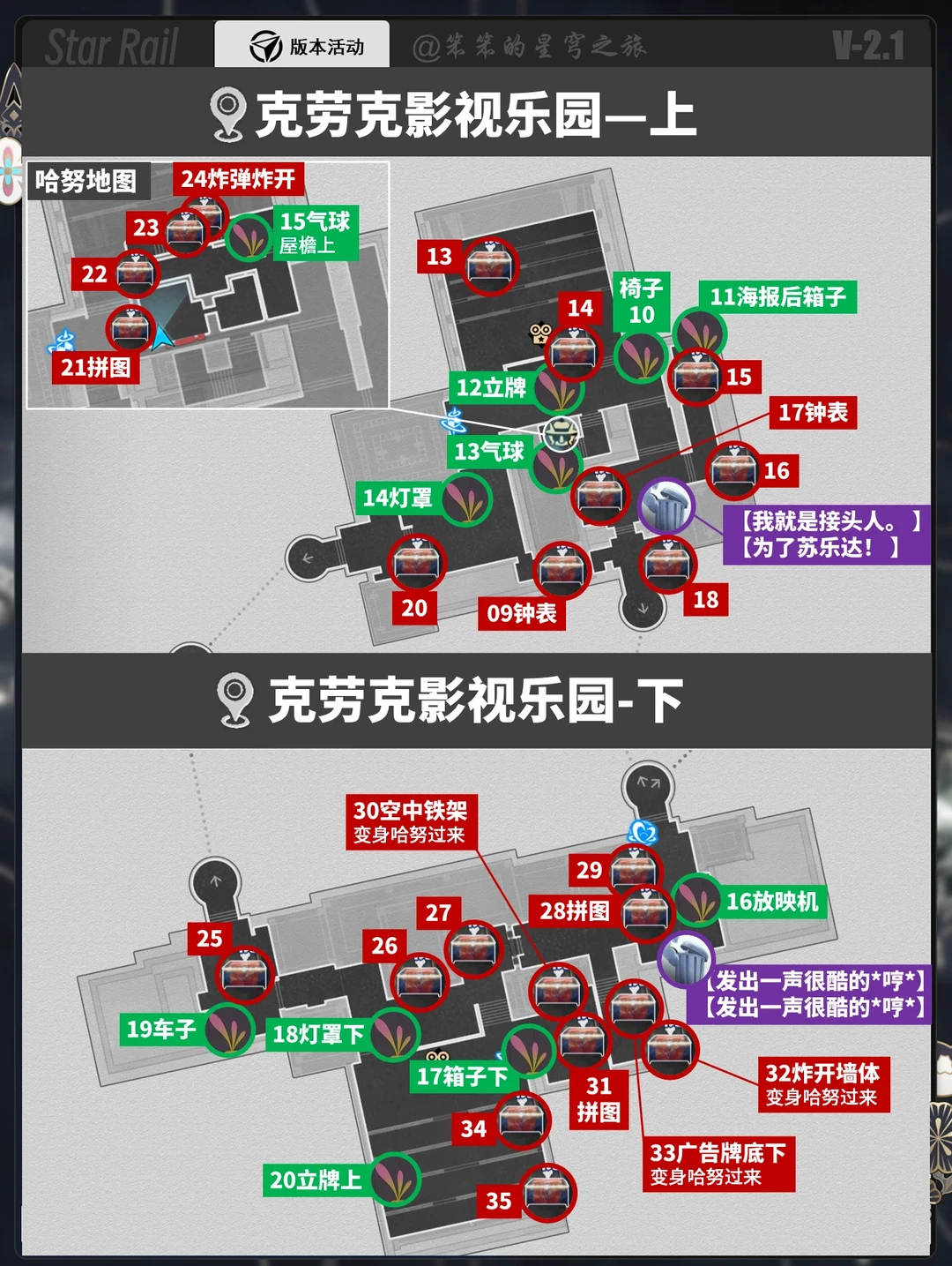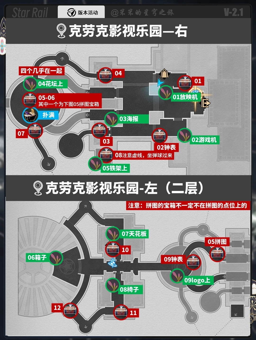 2.1两张地图所有宝箱,折纸小鸟点位大全