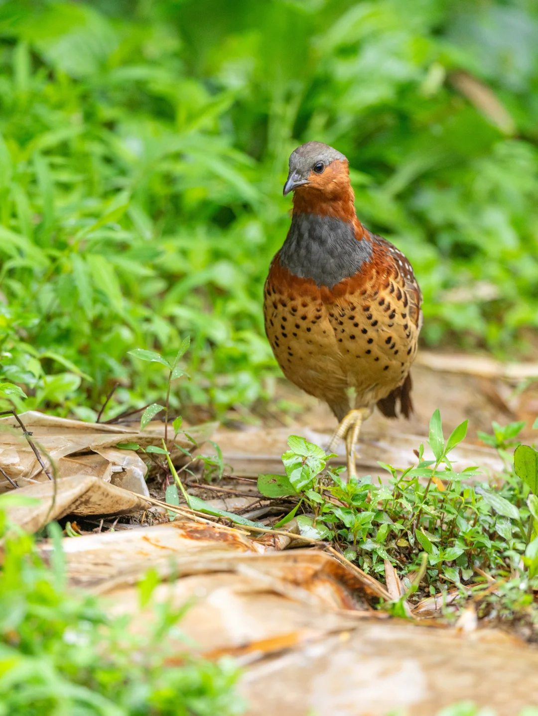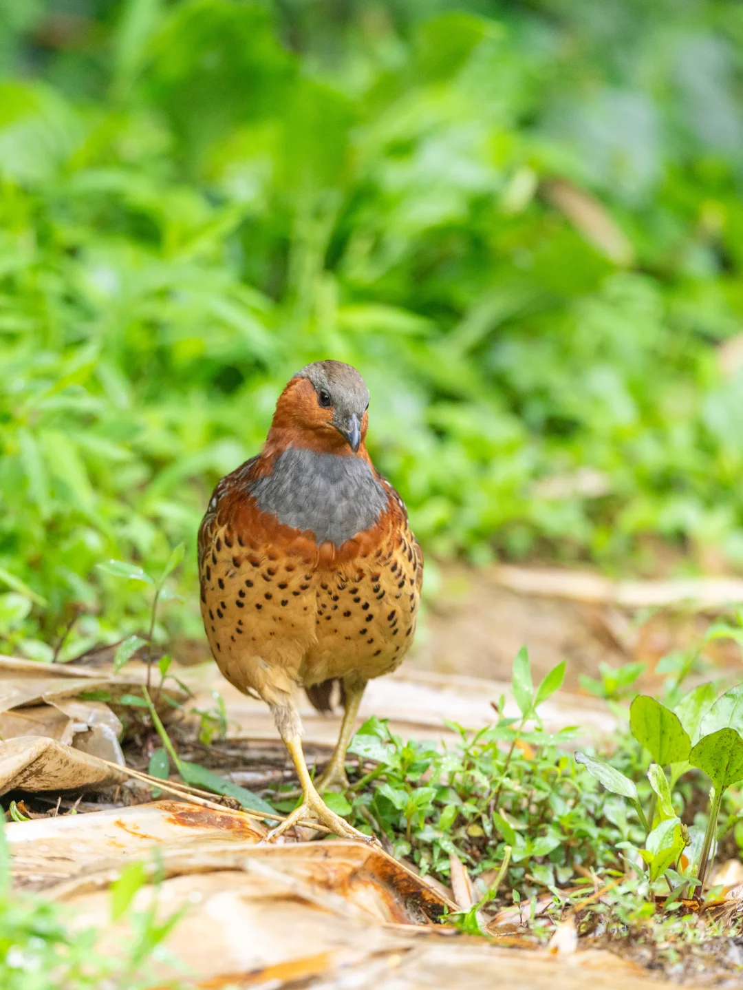 原创拍摄于2025.06 灰胸竹鸡,Chinese Bamboo Partridge,鸡形目雉科竹鸡属。是中国南方常见的小鸡,分布范围广泛。其显著特征包是灰蓝色的胸部。 灰胸竹鸡自不必多介绍,相信大家都见过,我曾经在重庆的一个街心三角绿化带里面见到一群灰胸竹鸡,而这次这次在四川看到的竹鸡实在是太自信大胆了,跟我就只有不到5米的距离,结果变成我不敢动了。[汗颜R]