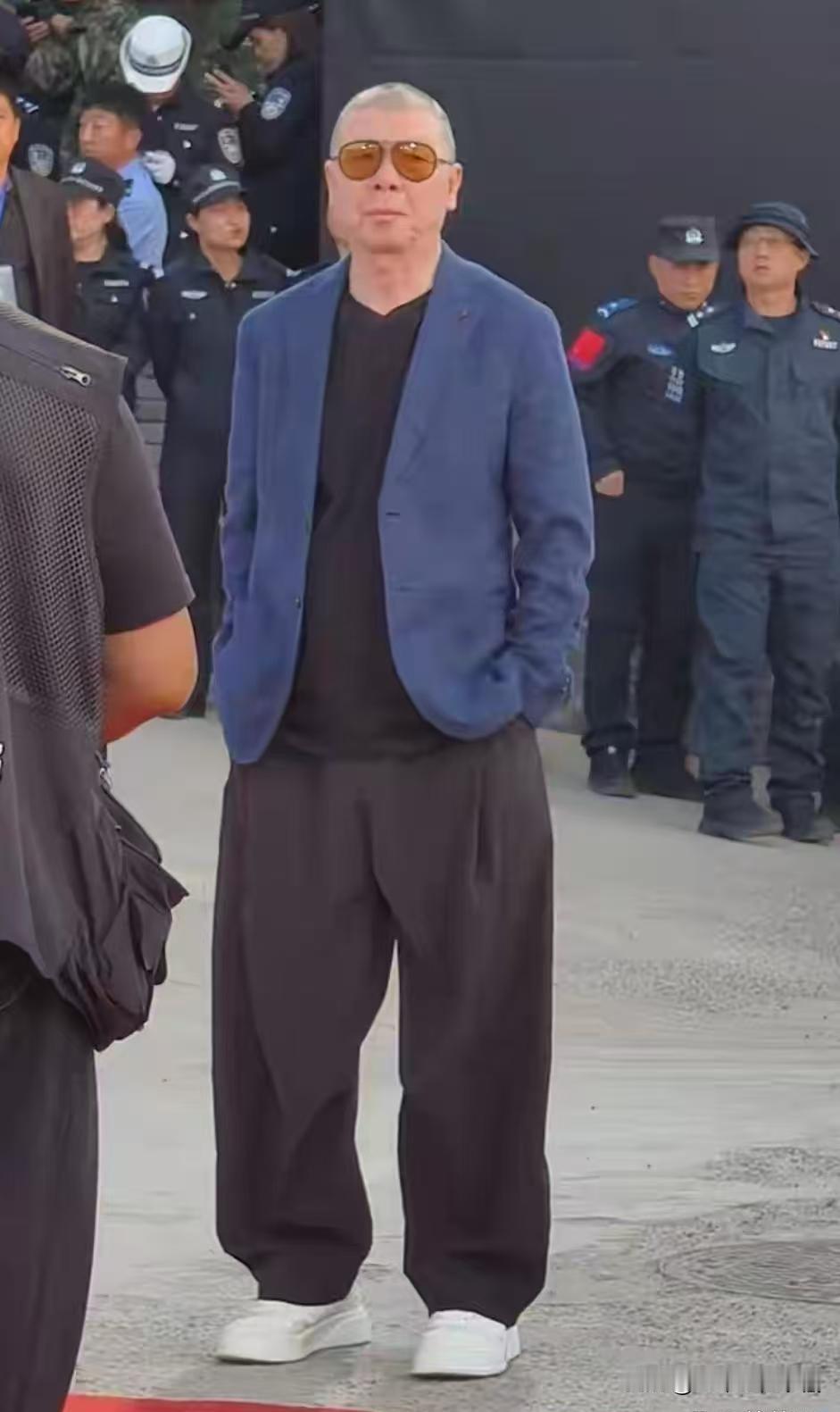 著名导演冯小刚这身穿着太帅气了,蓝色休闲西装外套,内搭黑色V领小毛衣,肥大宽松的