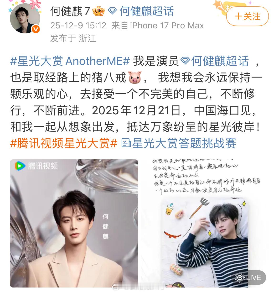 腾讯视频星光大赏何健麒官宣出席腾讯星光大赏他说自己是取经路上的猪八戒是因为他属猪