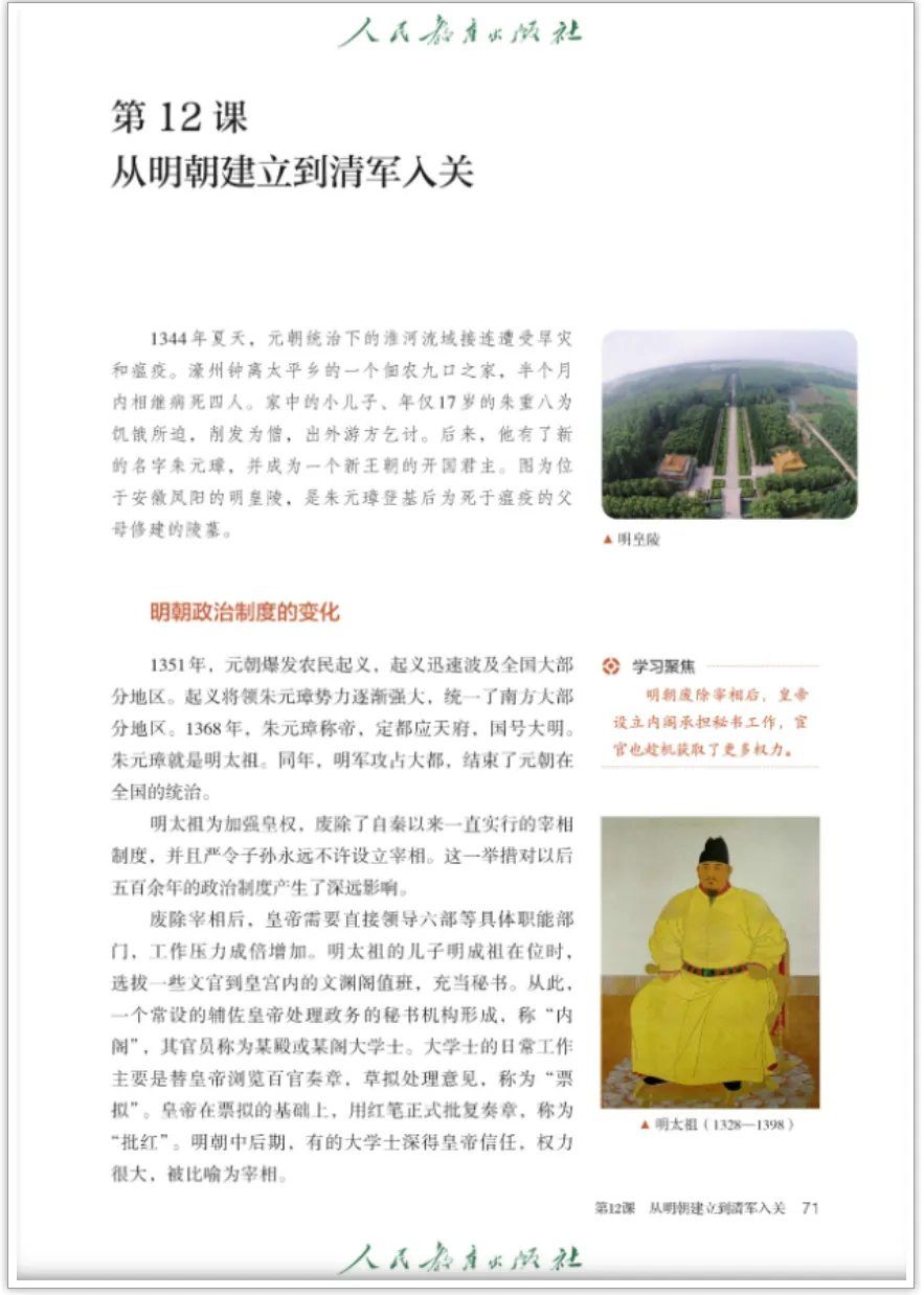 旧版历史课本中的明太祖形象人民教育出版社教科书的扫描电子版