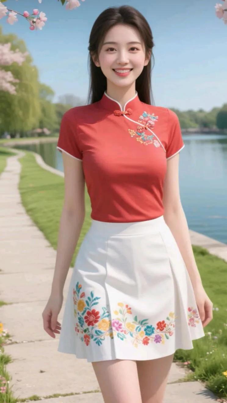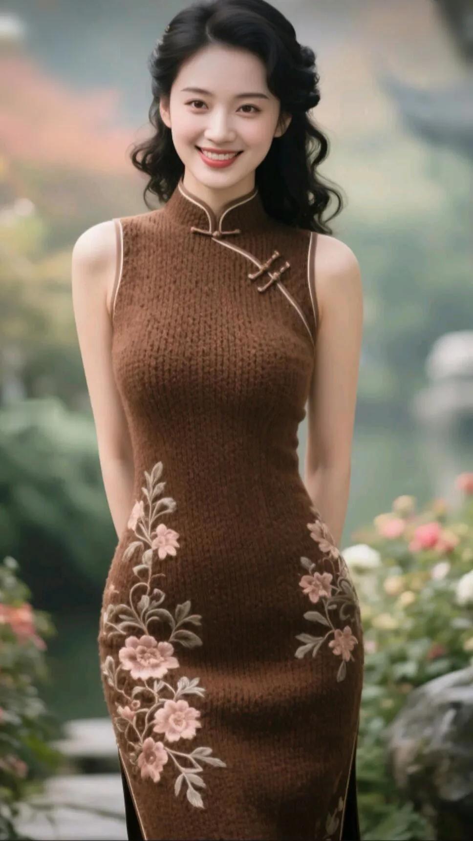 旗袍裹着荷风的柔,织锦花色与池间粉瓣相和。长发垂落时,笑意浸在夏的水汽里,比莲更