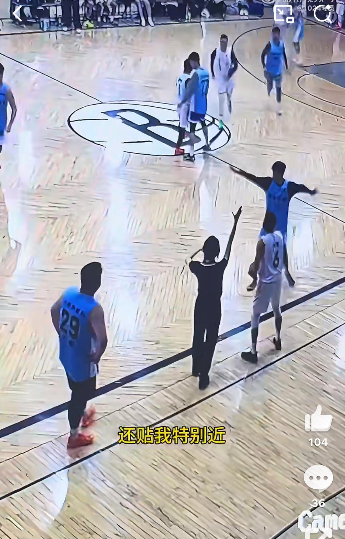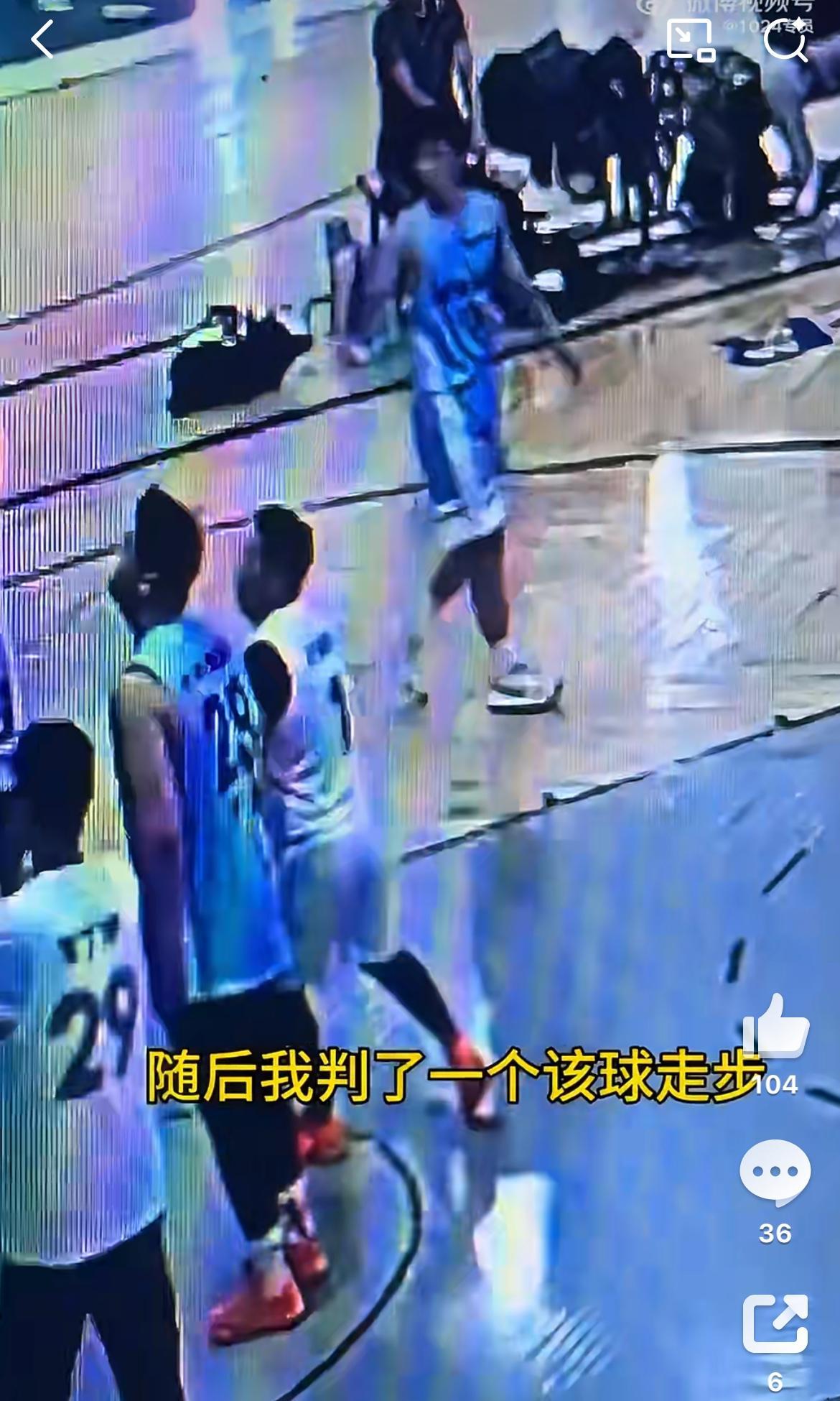 一个做篮球裁判的年轻女孩曝光球场的丑陋一幕,一胖男子被判走步不满,脚踢篮球,被罚