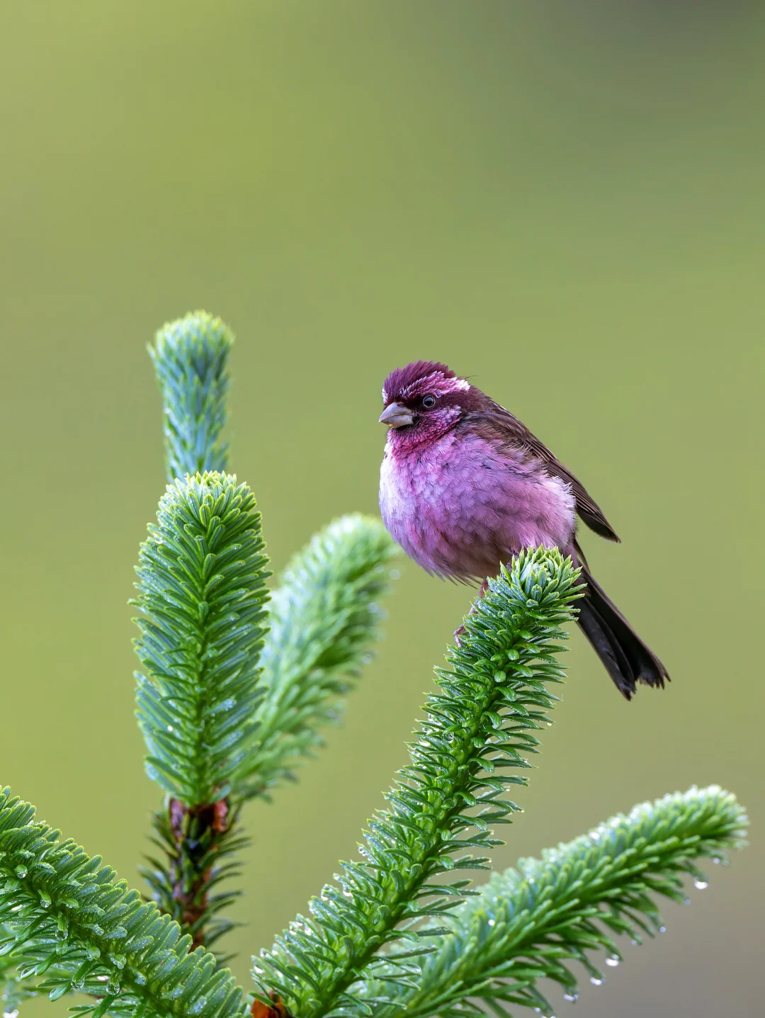 淡腹点翅朱雀,Sharpe's Rosefinch,雀形目燕雀科朱雀属。这种漂亮小鸟分布在我国西南地区,主要是四川云南,繁殖季在高山草甸边缘,到低海拔越冬。