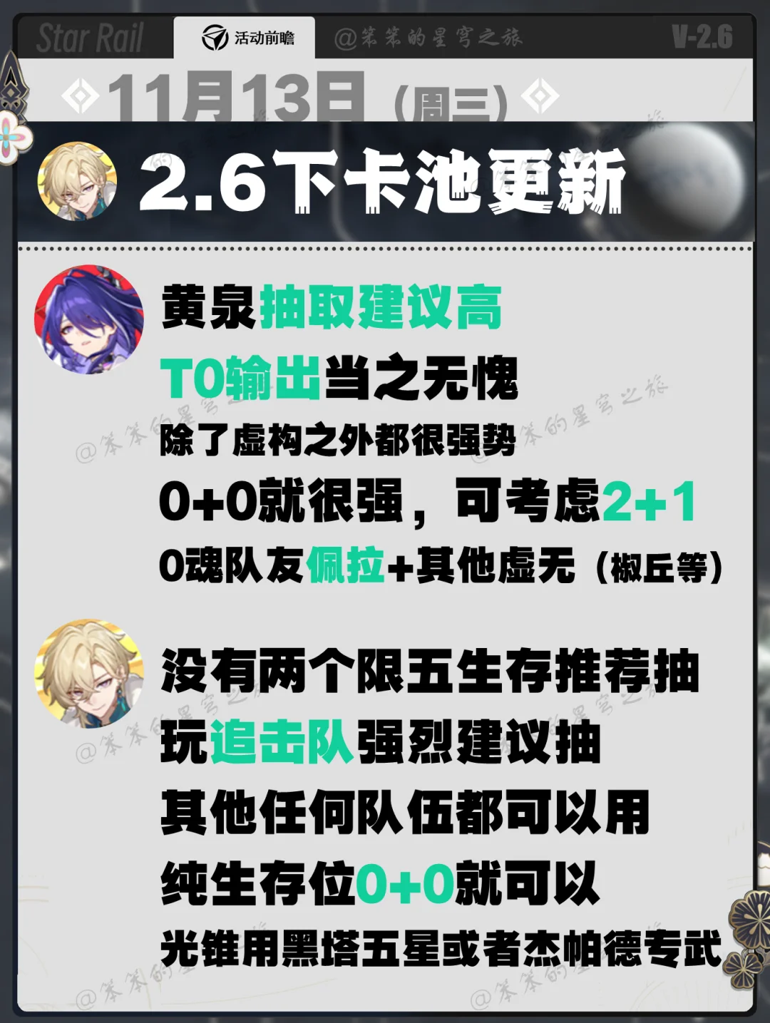 崩铁 11 月活动盘点,砂金、黄泉抽取建议