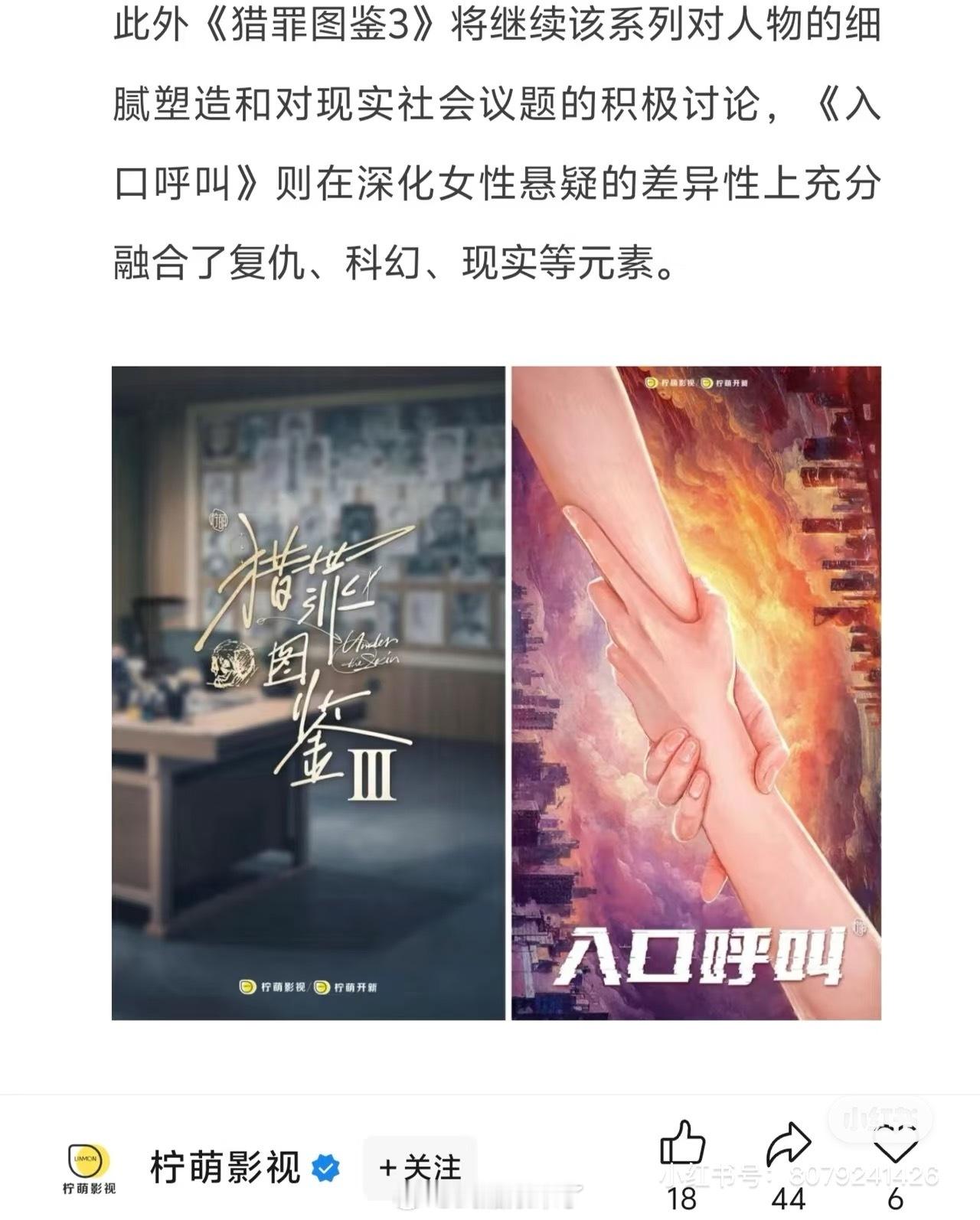 《猎罪图鉴3》也要来了嘛,柠檬真的吃到甜头了,第三部编剧好好写