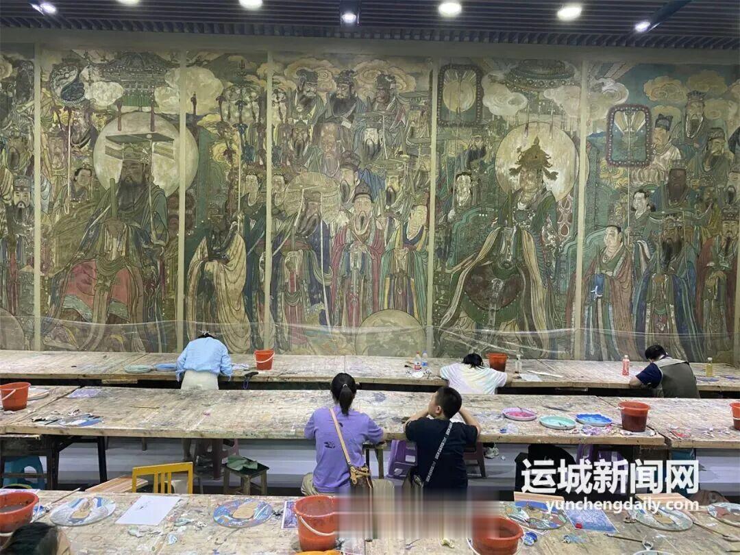 “这里的研学体验早已超越单一临摹,涵盖斗拱搭建、碑拓体验、壁画搬迁实景还原、壁画临摹涂色等15套特色课程,预计每年接待游客及研学团队超两万人次。”刘海波介绍,“此外,在基地的正东方向,投资近亿元的永乐宫壁画博物馆主体也已完成规划设计,将于春节前完成项目招标。待博物馆建成开放后,将与研学基地形成功能互补、业态联动的文化矩阵,让游客在沉浸式体验中读懂壁画艺术、在实景展陈中触摸历史脉络,真正实现‘让文物活在当下’的传承愿景。”