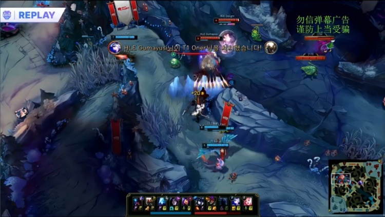 [6:50]Faker凤凰带队入侵HLE野区,Faker放墙拦住Zeka的瑞兹,后者交出闪现保住一命。