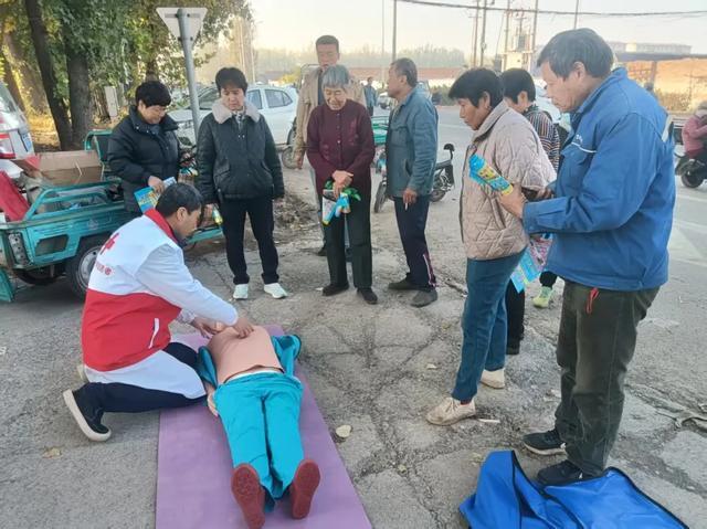 邹平市魏桥镇红十字会联合魏桥镇卫生院走进里八田大集组织开展2025年度第22期“小红讲急救”红十字应急救护微课堂活动。活动现场,一抹亮丽的“志愿红”成为了大集中最温暖的风景。志愿者通过“理论讲解+实操演练”相结合的方式,用通俗易懂的方言,为围观群众深入浅出地讲解了心肺复苏在心跳骤停“黄金4分钟”内施救的关键性、重要性。