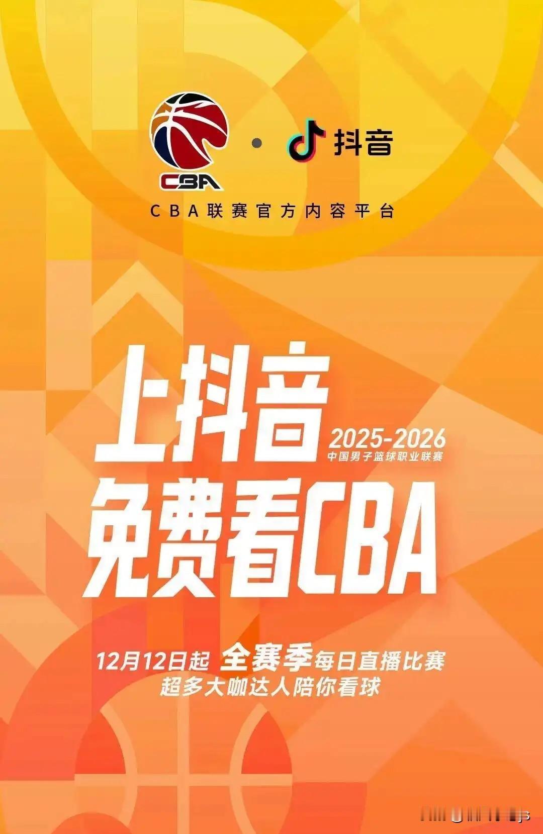 2025 - 2026 CBA联赛12月12日就开打了,可看比赛这事,真让人头大,让人憋屈。 早早购买了咪咕视频年卡,就盼着观看CBA,现在好像不能如愿了。既然没有如愿,不如释然,不如静心。 抖音成了CBA联赛官方内容平台,每个比赛日会挑几场免费播。多为核心赛事、重磅对决等焦点赛事,覆盖超60%的焦点比赛,挺令人期待。 抖音平台虽然少了一些cba赛事,但有得看总比没有好。 现在只能慢慢适应在抖音看球,说不定看着看着就顺眼了,看着看着真香了呢! (图片素材来自网络)