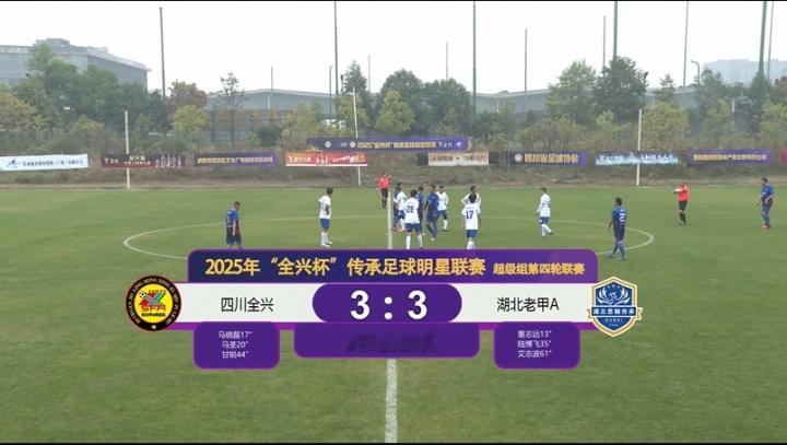直播吧12月12日讯2025年“全兴杯”传承足球明星联赛超级组第四轮联赛,四川全兴甲A明星队vs湖北思翰传承明星队。最终经过70分钟的激烈争夺,两队3-3战平。