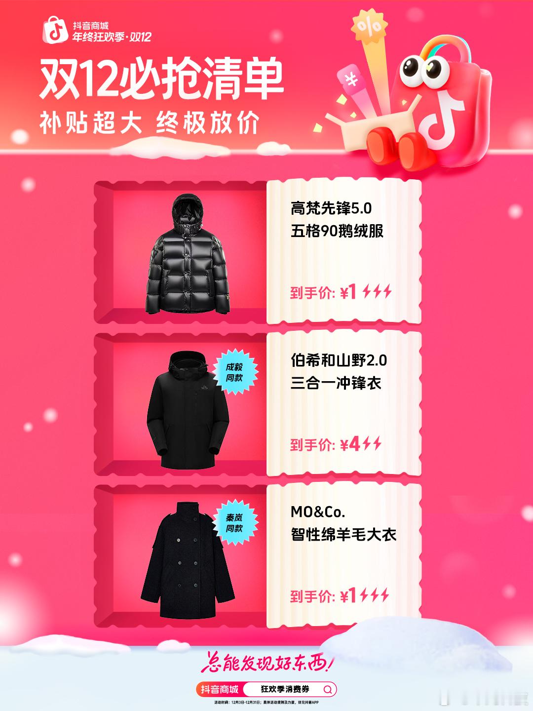 抖音商城年末终极补好价别错过年末想囤货又怕花冤枉钱?抖音商城双12年终促太懂咱们了!直接甩出狂欢季消费券,人人可领,最高能省千元,这羊毛我先薅了!不管是大牌服饰、大牌美妆,还是居家必备的数码家电,消费券全能用!天冷了换件保暖外套,给家里添台实用小家电,囤点护肤品犒劳自己,用券后价格直接打骨折,真正实现 “花小钱办大事”。而且这次优惠没有复杂套路,优惠直给到底!直接上抖音商城搜「狂欢季消费券」就能一键领取,领完再下单,心仪好物低价抱回家,省钱又省心!不说了,我要去选羽绒服了!