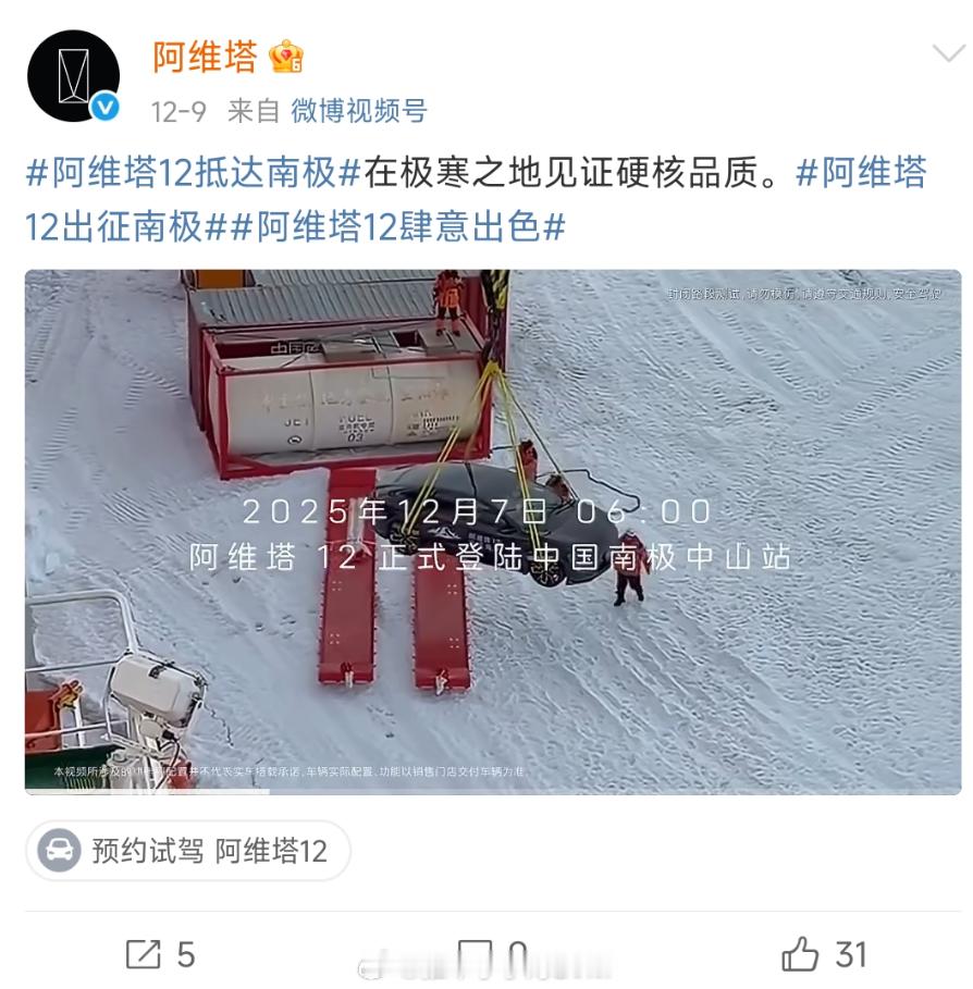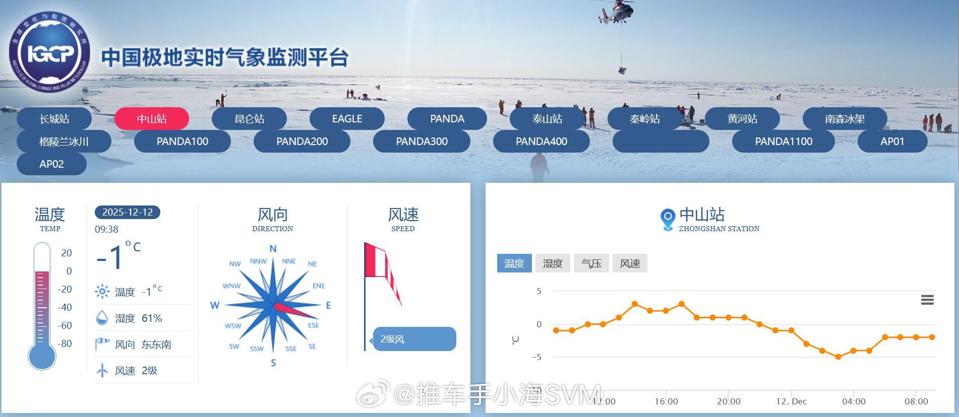 怎么现在大家测试汽车都喜欢去南极了,可是现在南半球是夏天,南极不少地方温度不低啊!南极很冷这是刻板印象了。尤其是阿维塔去的是南极中山站,看极地实时气象监测平台,南极中山站现在的温度也就零下一度,北京今天天气都是零下两度到零下五度,南极还没有北京冷呢。这个天气条件测极寒有点离谱吧?汽场全开