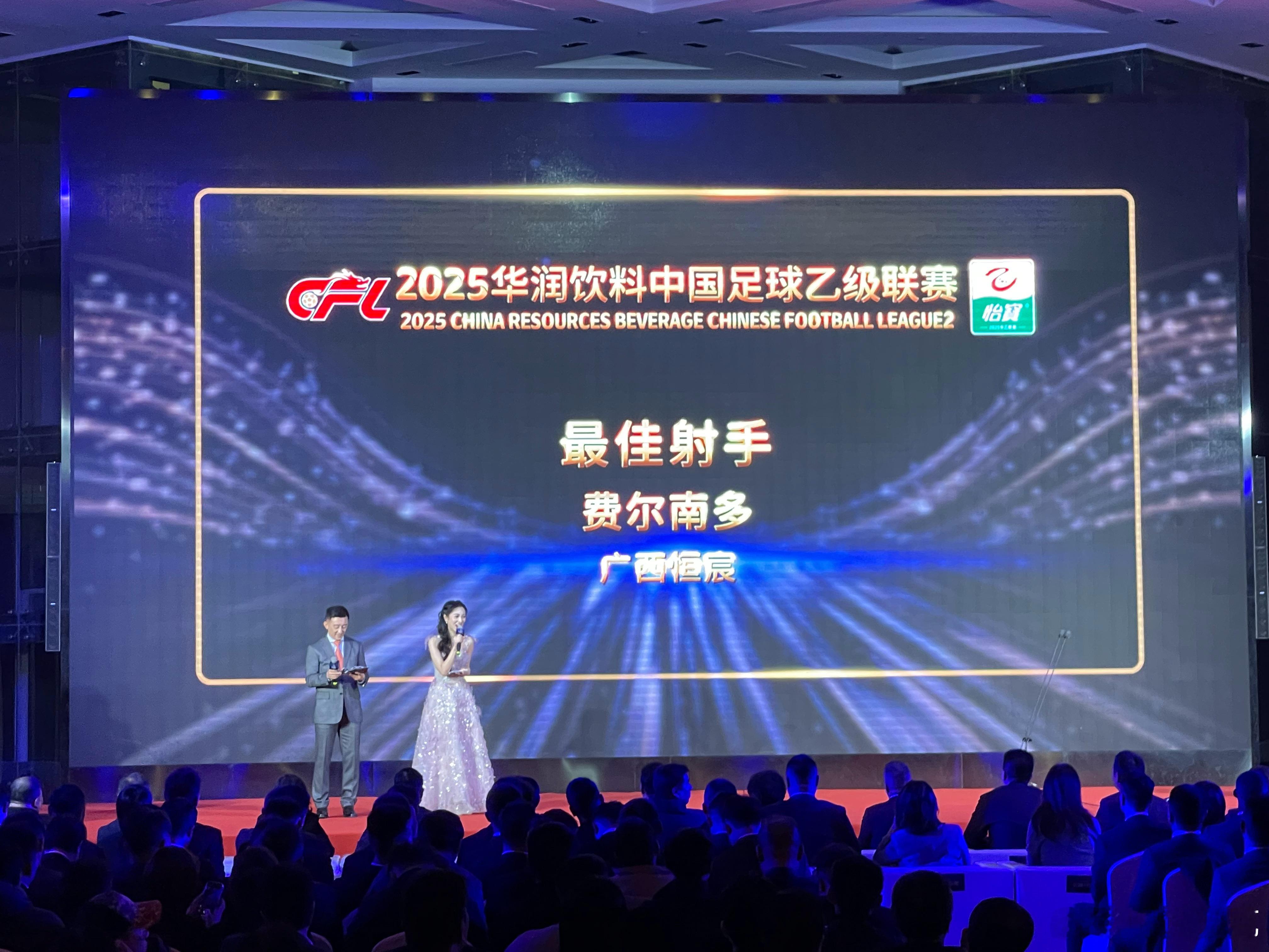 中甲和中乙最佳射手费尔南多下去就是降维打击中足联颁奖典礼2025赛季中国足球职业联赛颁奖会