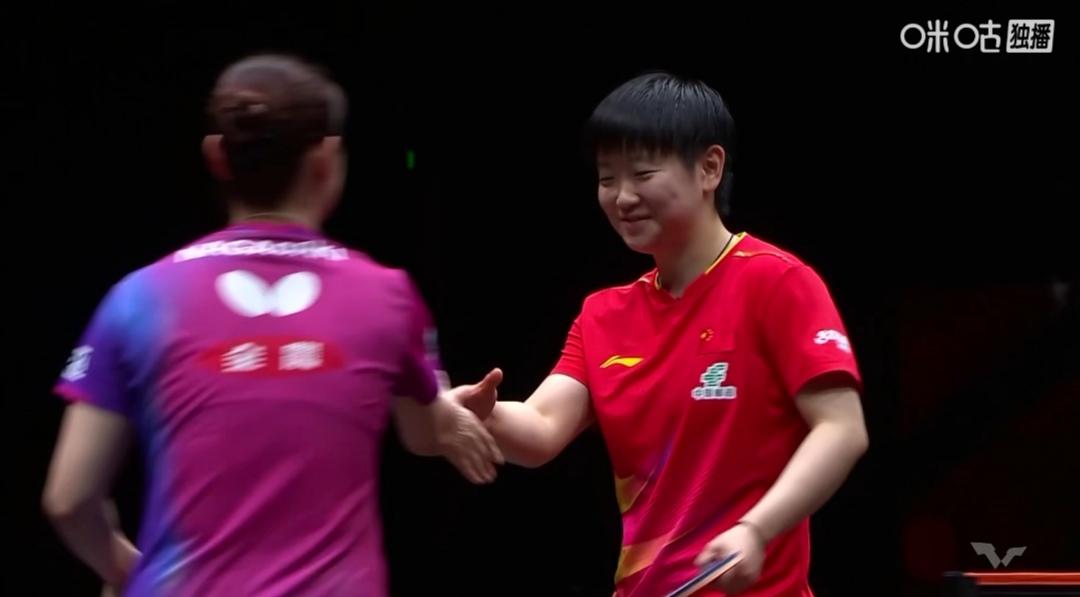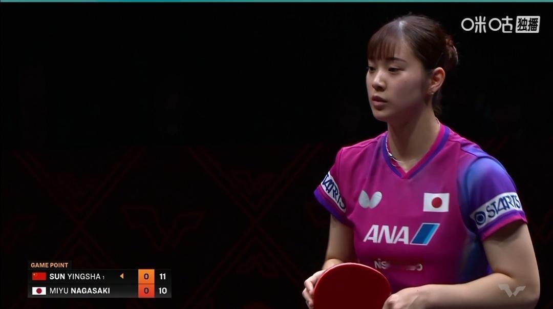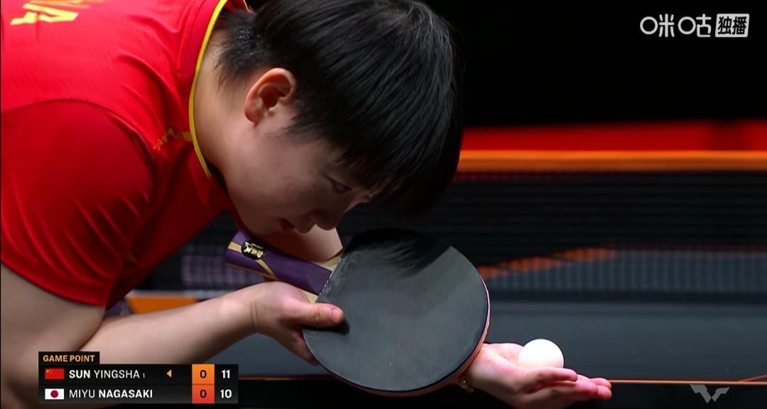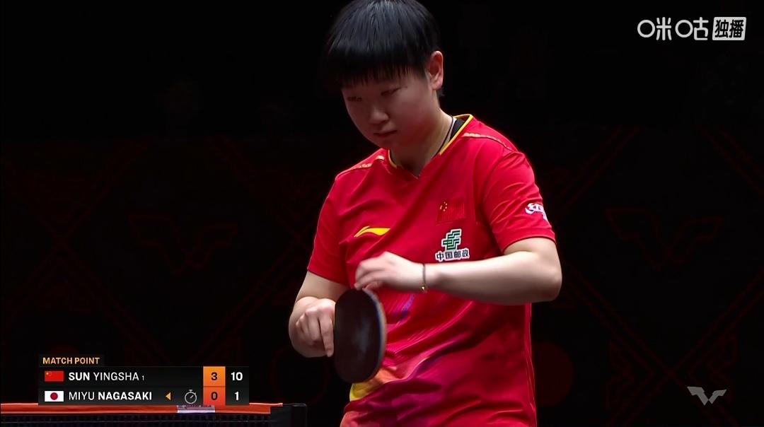 热烈祝贺国乒包揽香港总决赛女单四强! WTT香港总决赛最后一场女单1/4决赛 孙颖莎(12-10;11-6;11-6;11-1)横扫日本长崎美柚! 第4局莎莎3:0领先,长崎惨败变换发球,莎莎直接挑战! 发球角应小于30度,最后长崎发球角度高达41度! 长崎不好意思笑了! 这是继陈熠4:1胜队友陈幸同、王曼昱4:1大胜韩国朱芊曦、蒯曼4:2胜日本大藤沙月后,孙颖莎4:0横扫长崎美柚,晋级女单四强! 恭喜孙颖莎晋级四强! 热烈祝贺国乒包揽香港总决赛女单四强!
