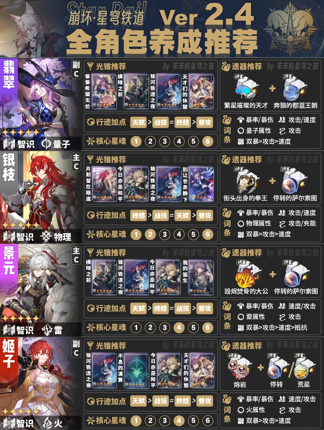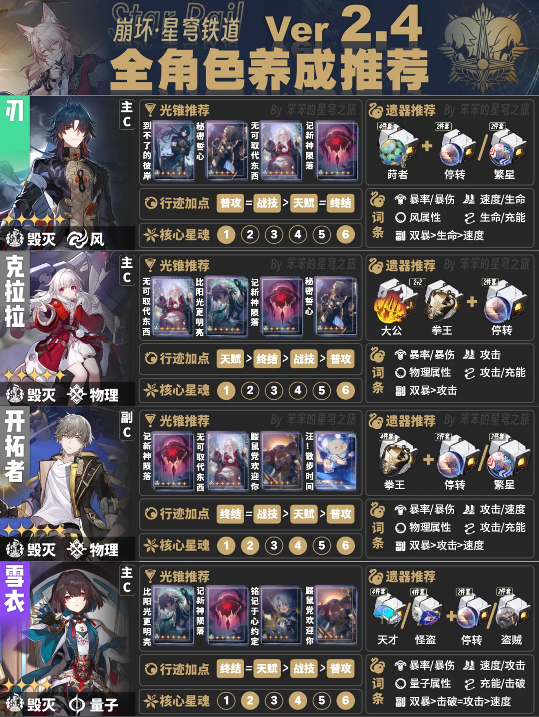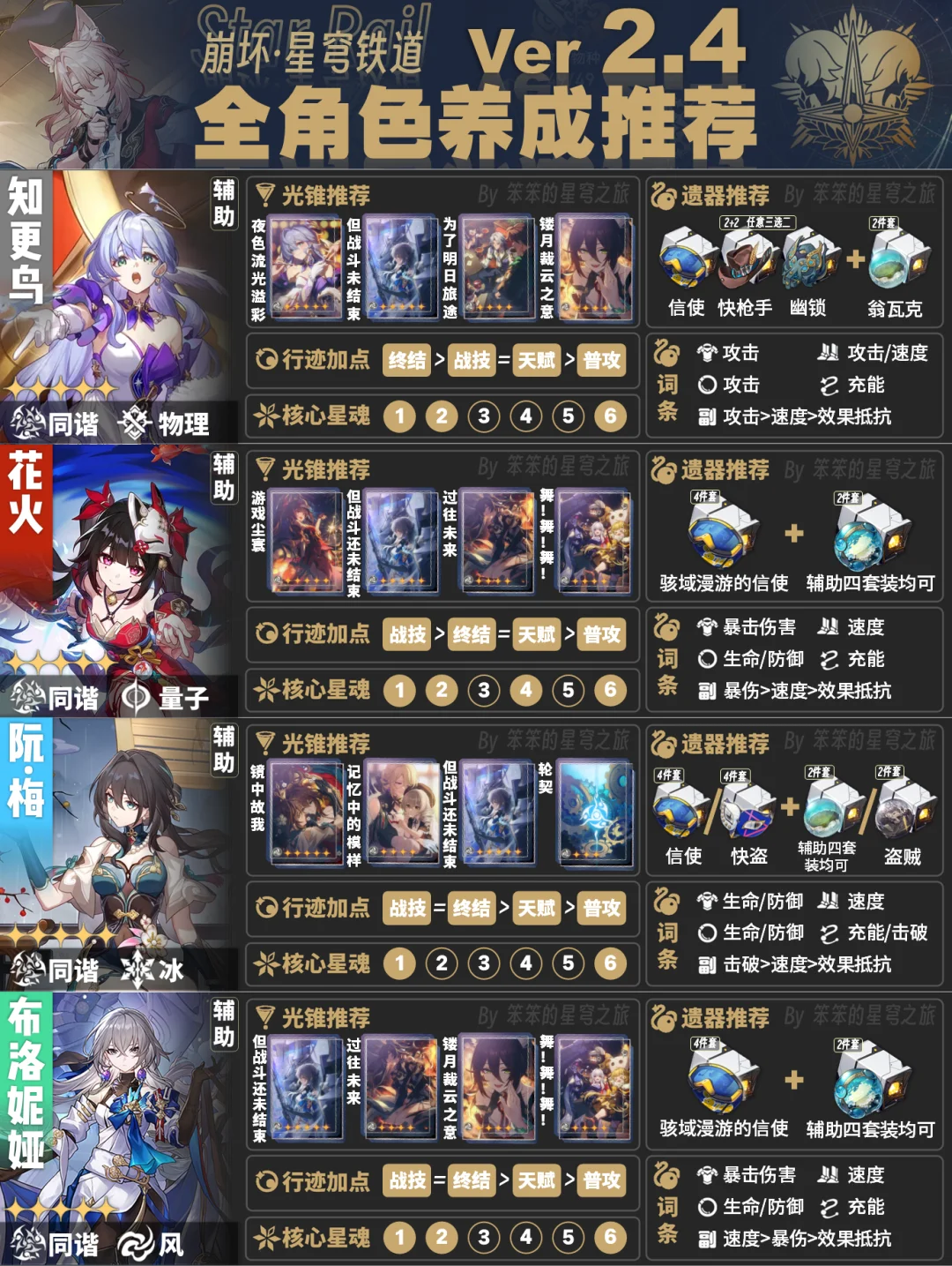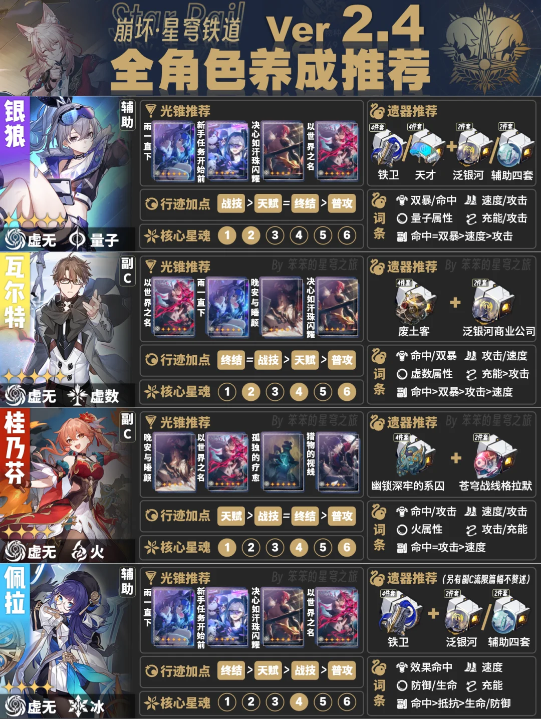 今天给大家带来的是截至2.4版本全角色培养一图流