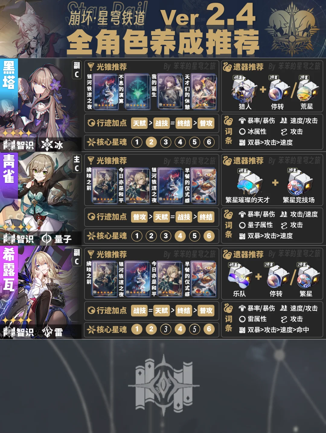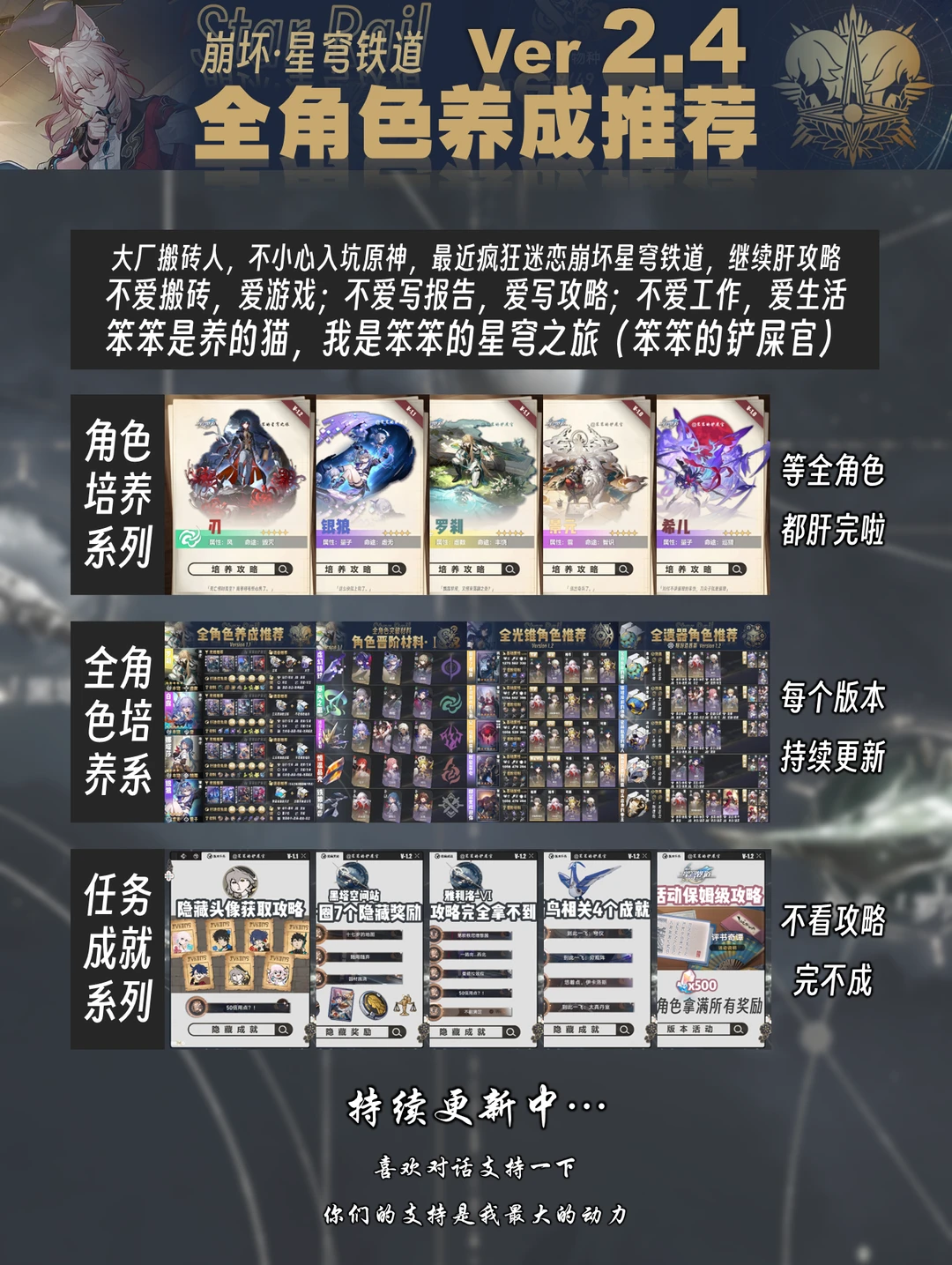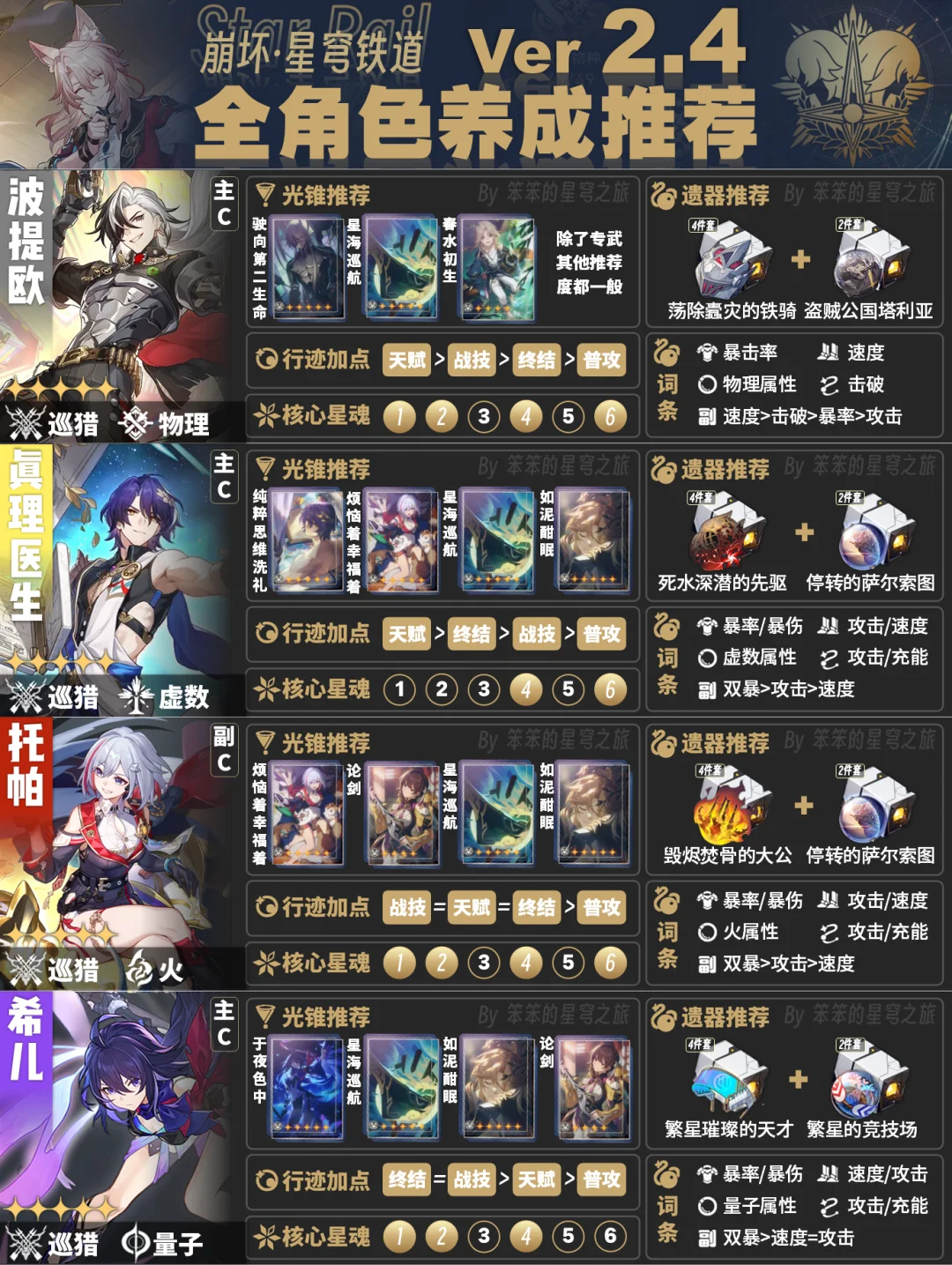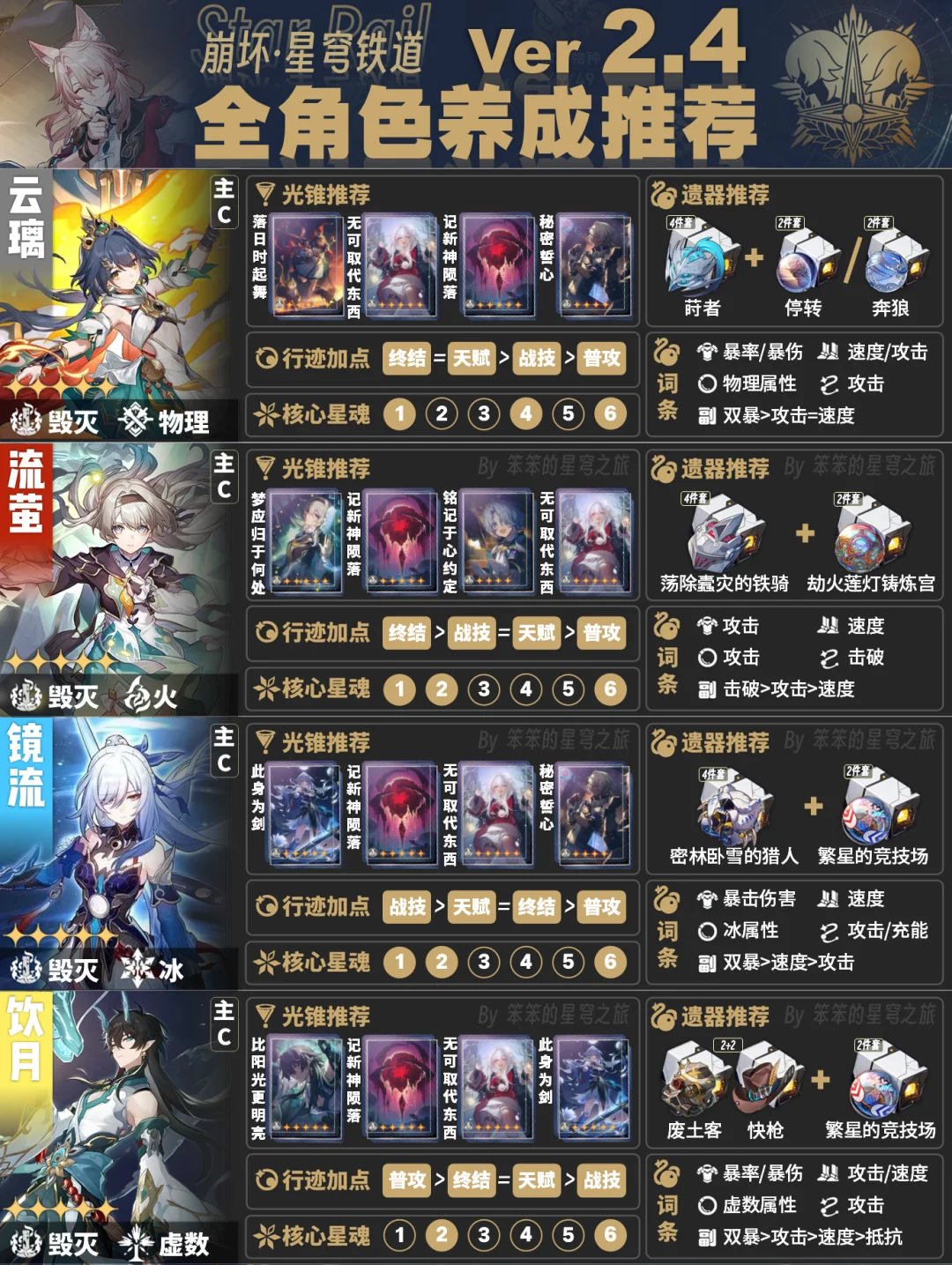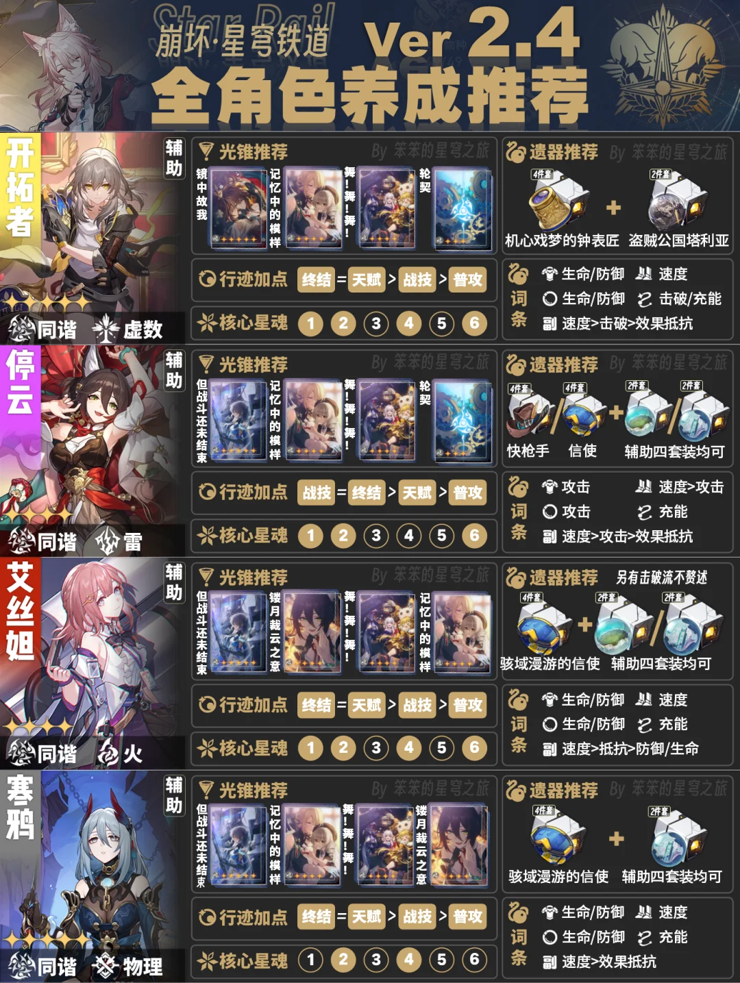 今天给大家带来的是截至2.4版本全角色培养一图流