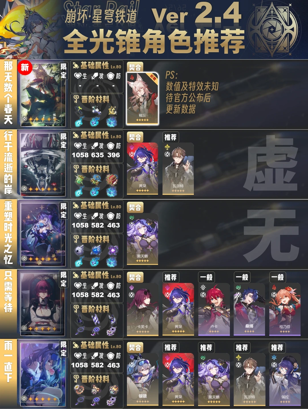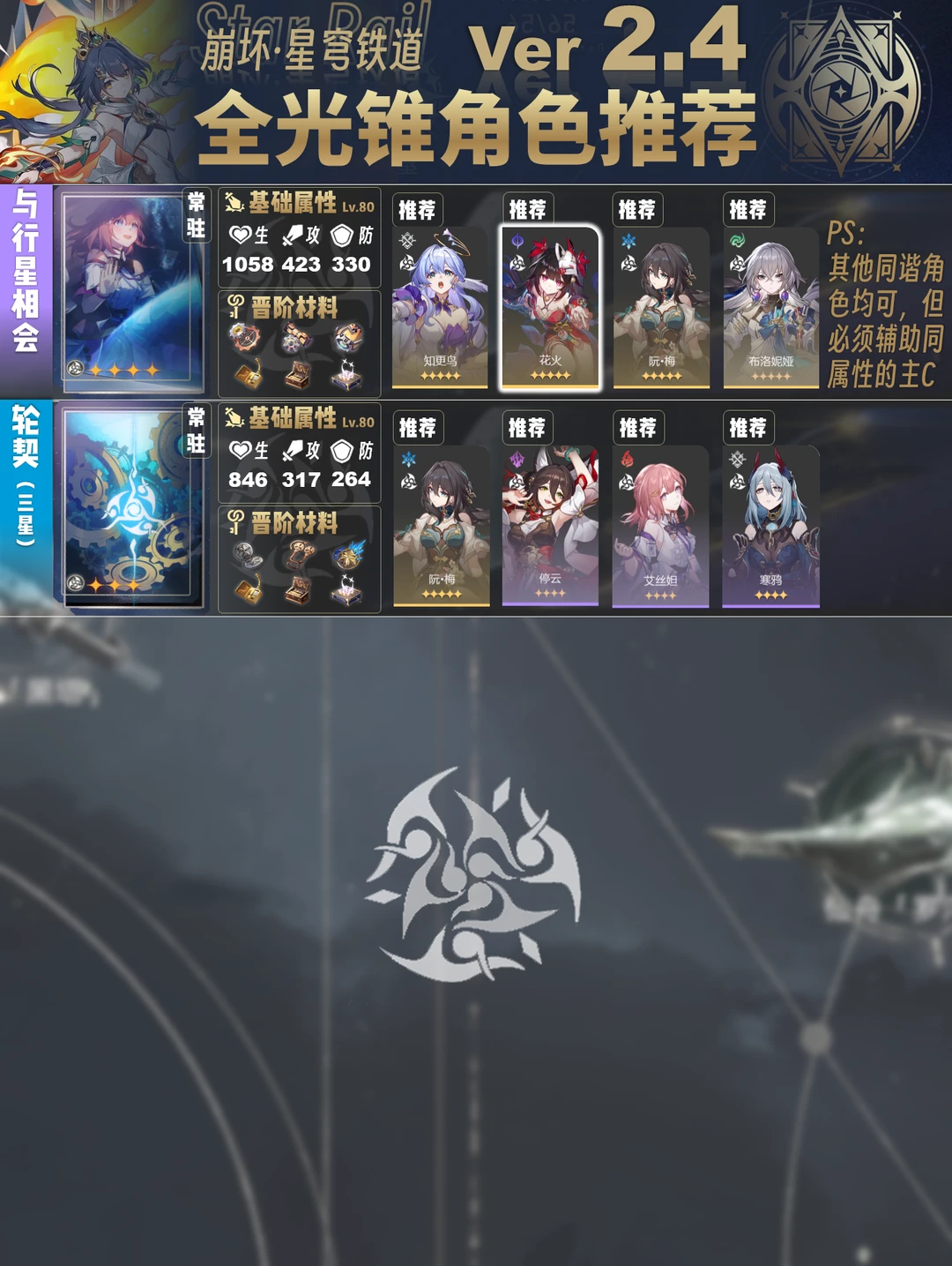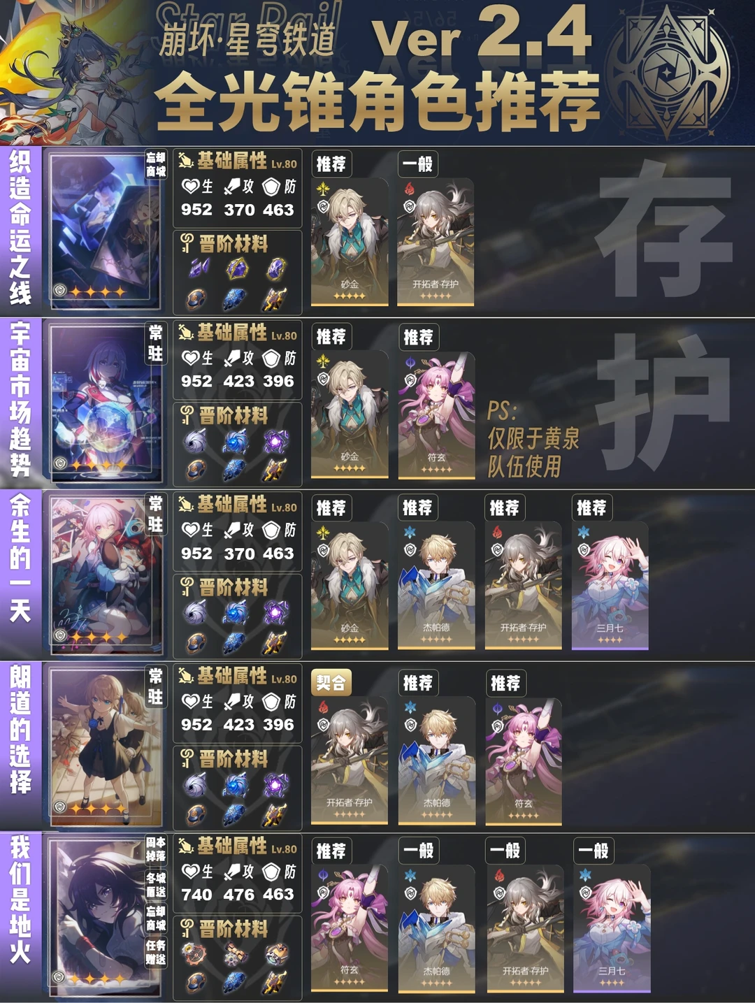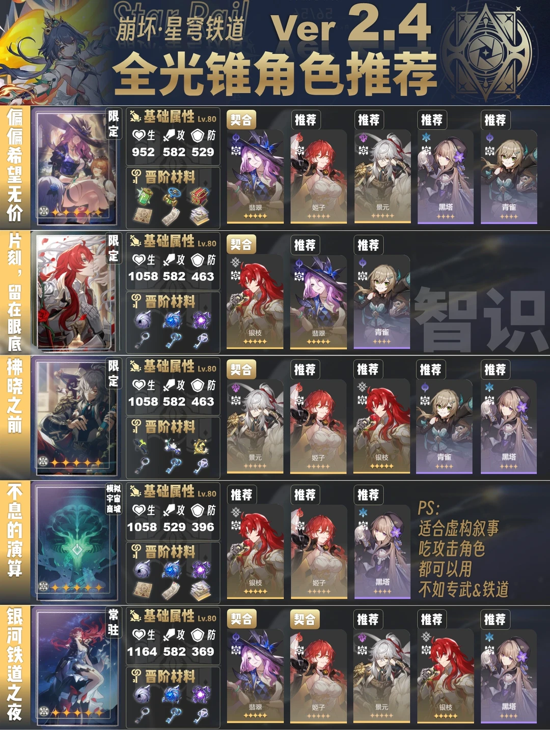 今天给大家带来的是2.4版本全光锥角色推荐