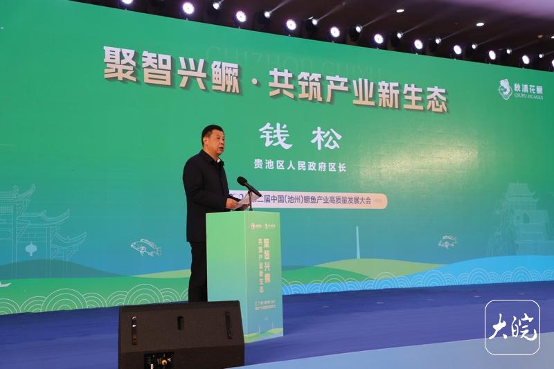 作为大会承办方之一,贵池区人民政府区长钱松在致辞中介绍,贵池与鳜鱼的缘分,源远流长。南北朝时期,梁昭明太子盛赞秋浦“水好鱼美”,“贵池”由此得名。多年来,贵池守护着“一江五河十二湖”的优质水系,前赴后继发展鳜鱼养殖。从上世纪90年代“秋浦花鳜”人工繁育成功,到如今建成华东地区先进的鳜鱼苗种繁育基地,贵池的鳜鱼产业实现了从无到有、从有到优的大步跨越。