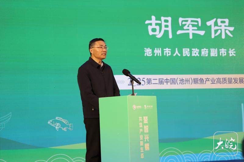 池州市副市长胡军保在致辞中表示,近年来,池州市持续激活农业新质生产力,推动鳜鱼产业走出一条“苗种良种化、养殖规模化、生产标准化、产业链条化、产品品牌化”的发展之路。当前,池州鳜鱼产业正处于从“规模扩张”向“质量效益”转型的关键阶段,“迫切需要各位专家学者在良种培育、饲料驯化、绿色养殖、精深加工等领域把脉问诊,献智出力,帮助我们破解技术瓶颈,拓展产业边界。”