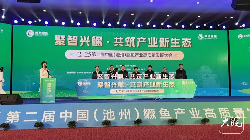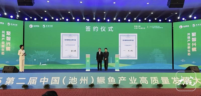 大会还现场举行了品牌共建、校企合作、招商合作、引种合作四大版块签约仪式。池州市农业农村局与中国渔业协会签约,将共同推进池州鳜鱼品牌共建;总投资约33亿的多个招商项目现场集中签约。大会还为“1+5”农业科技创新联盟池州鳜鱼产业分盟、池州市“十佳”鳜鱼养殖企业、“池州鳜鱼美食名店(传统技艺)”和“池州鳜鱼美食名店(创新典范)”等获奖单位现场授牌。