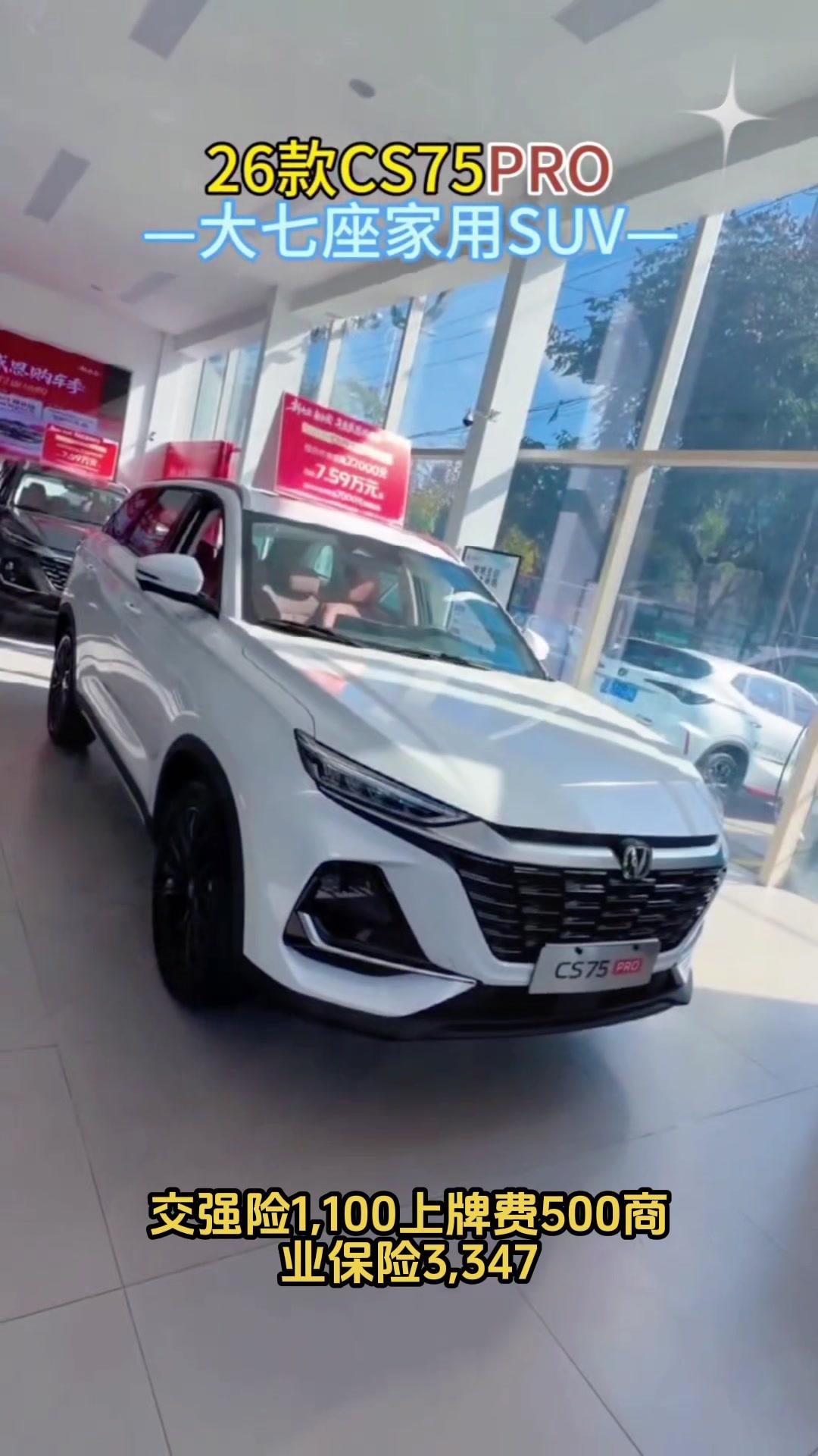 买长安CS75选这款准没错!2026款Pro1.5TDCT舒享型5座,是全车系里关注度与配置性价比最均衡的一款。 官方指导价10.49万,多数地区降幅达2.4万,裸车价8.09万。 落地费用明细:购置税7159元,交强险1100元,上牌费500元,商业保险3347元,总计约9.3万。 这个价位稳稳当当,各地优惠力度有波动,想了解当地最高优惠和历史最低成交价,可点击视频左下角整车链接。