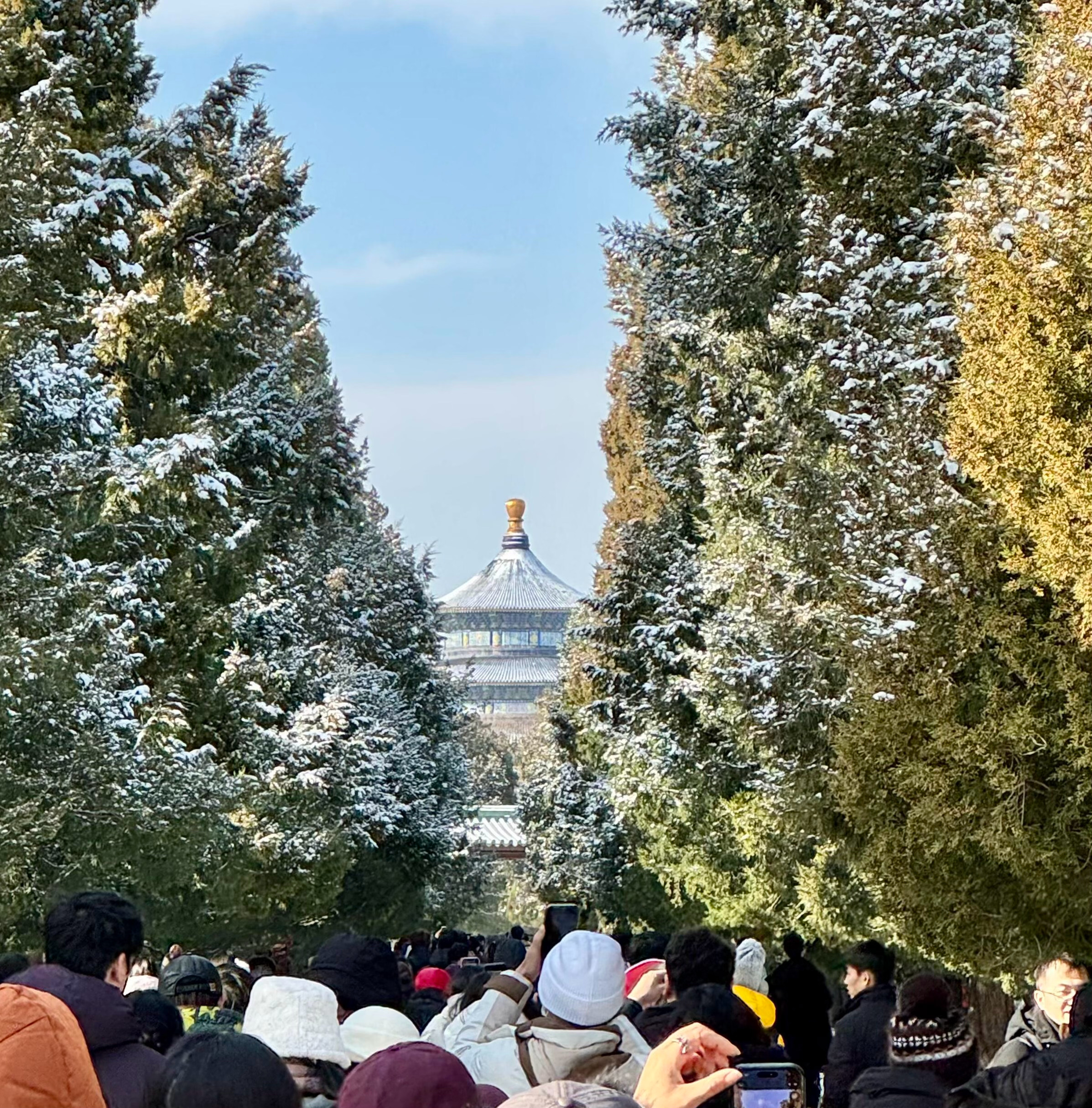 其实,昨天的雪下得很薄,今天都成了冰溜子。感受一下景山公园和天坛的人海!早晨看了