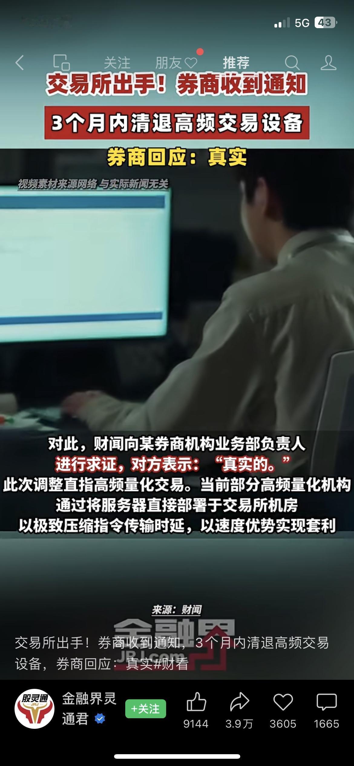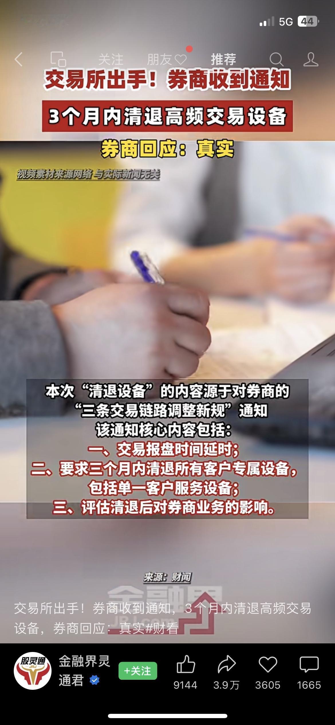 留心点!A股3个月清退高频交易设备,股民要注意这1点 能避免股市不公平交易的新规来了,咱普通股民赶紧看!12月11日交易所发通知,要求券商3个月内清退高频交易专属设备,还调整了交易报盘延时。说实话,这对咱小散户是好事,高频交易的快速挂单优势没了,股市买卖更公平。我上周买股票还碰到过挂单瞬间被秒撤的情况,新规落地后应该不会有这糟心事了。咱股民后续交易别慌,正常挂单、买卖不受影响,只针对机构的高频交易设备。你觉得这新规能让股市更公平不?评论区说说看法~股票监管规则 股票监管规则