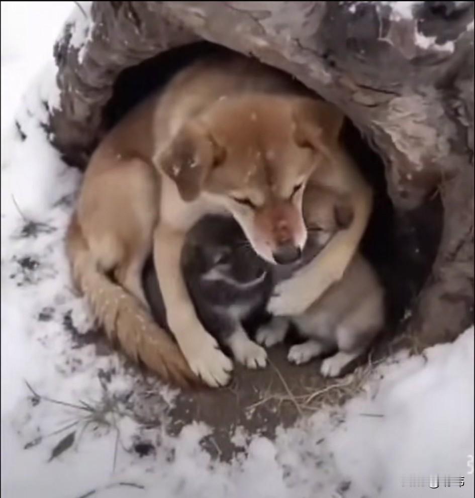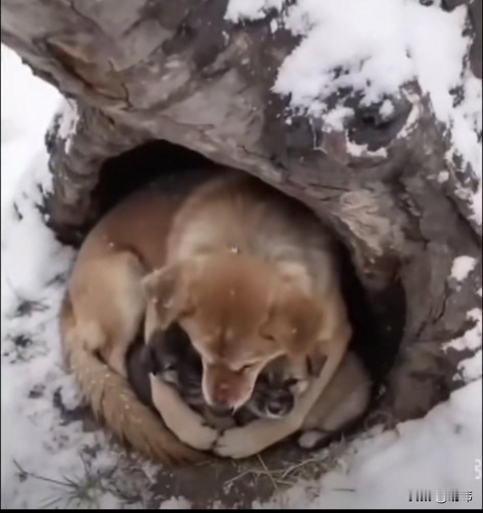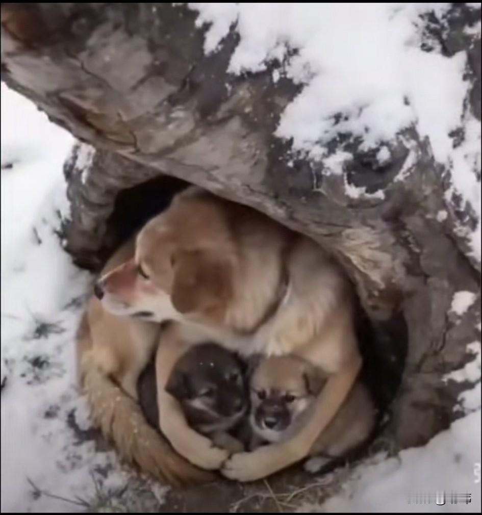 太可怜了!这天一位大哥和几个朋友去山上挖冬笋,当他们爬到一个山坳的时候,看到既凄惨又暖心的一幕,一只狗妈妈抱着两只狗宝宝蜷缩在一个树洞里。 虽然树洞可以抵御部分寒风,可它们依旧被冻的瑟瑟发抖,特别是狗妈妈,用自己的身体为孩子遮风避雪。 善良的大哥顿时心生怜悯之心,决定收养这几只狗狗,他们把狗狗一家抱下山,然后送去宠物医院检查并打了疫苗,之后就带回去收养了,相信在大哥的照顾下,狗狗一家也会越来越好的,毕竟有人照顾它们了。
