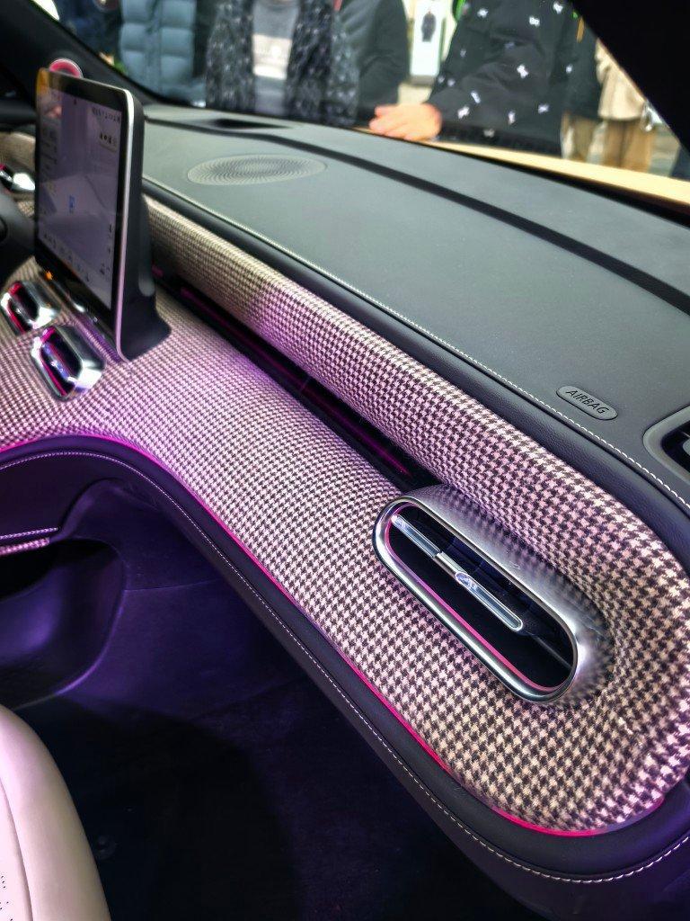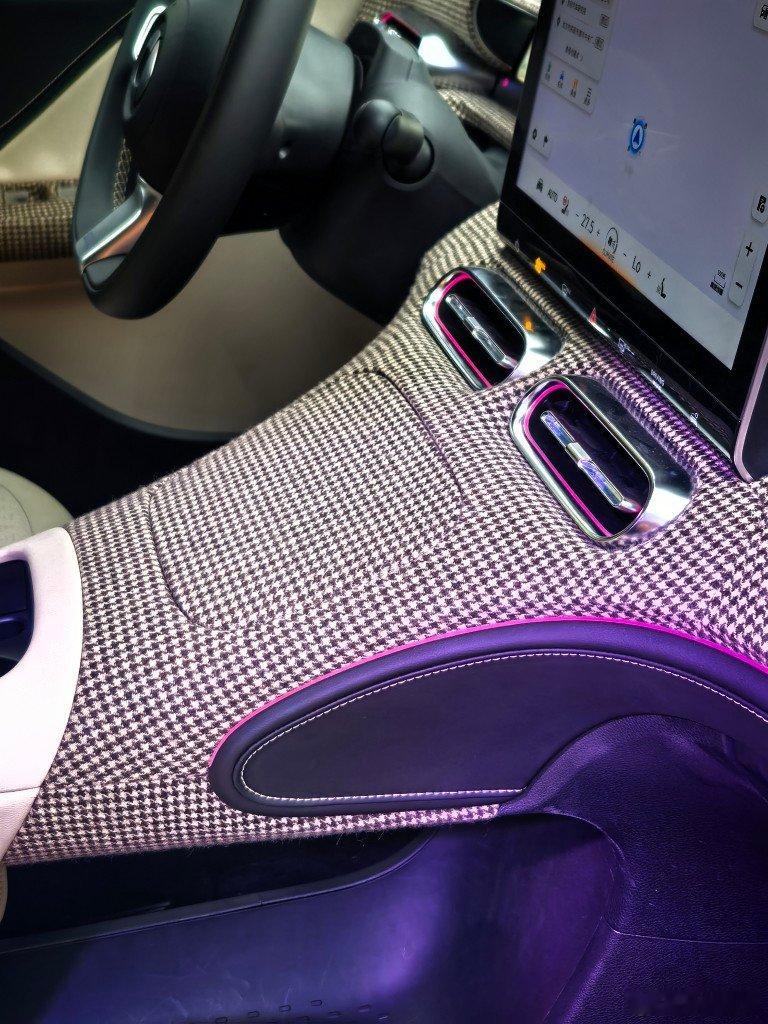 和李鄂合作的一款精灵1号最近十天都会在青浦奥特莱斯作展出 看照片不觉得,实物非常有质感,麂皮的膜,日本东丽的。车顶和车内的千鸟格做了非常好的呼应,恰到好处的点缀比铺天盖地的填充要精致得多。(现场好多人,各个年龄段,上手一摸直接说麂皮,我也挺吃惊的,看来大家对这个材质认识非常到位)smart官方的这种合作,延续了smart有趣,不乏味的DNA,问了一下,车主也可以在官方商城选择类似的膜,并由官方售后完成。这就是平替版本的奔驰Manufaktur/宝马 Individual和奥迪 Exclusive啊。当晚如果想个性化到极致,那就得自己掏设计费了。在新能源起势之后,我们看到越来越多的理想,越来越多的奔驰,越来越多的奔驰……一个充分无趣的大趋同。但当智驾,当配置,当空间充分竞争之后,一切最终还是要回到品牌和个性的趋异上来的。现在距离那个个性化窗户越来越近了。