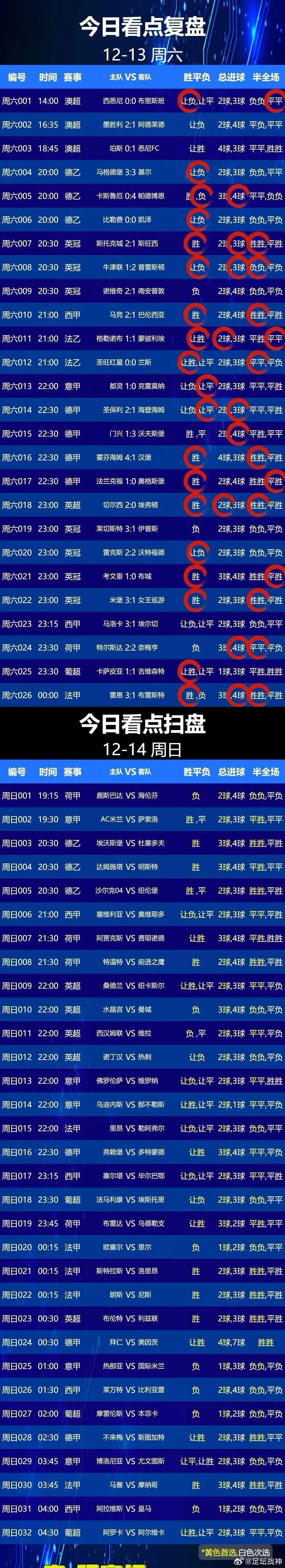 12月14日001 鹿特丹斯巴达 VS 海伦芬002 AC 米兰 VS 萨索洛 003 埃弗斯堡 VS 杜塞尔多夫004达姆施塔特 VS 普鲁士明斯特005 沙尔克04 VS 纽伦堡006 塞维利亚 VS 皇家奥维耶多