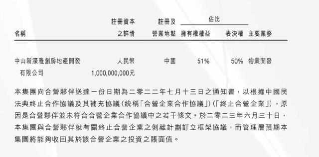 据悉,双方已于2023年6月就合作终止订立剥离框架协议,因雅居乐未履行付款义务,新濠已向中国国际经济贸易仲裁委员会提起仲裁追讨,且已对相关投资计提1.04亿港元减值。