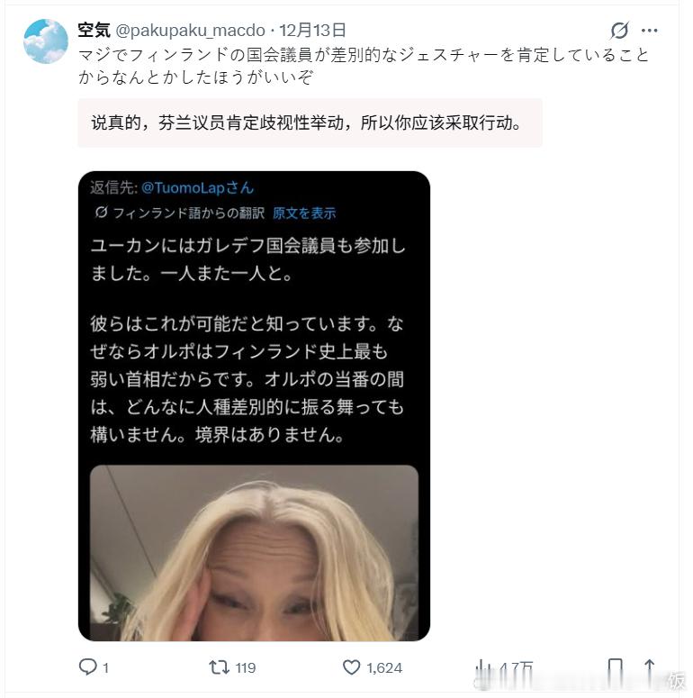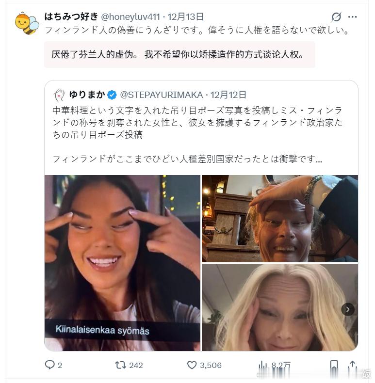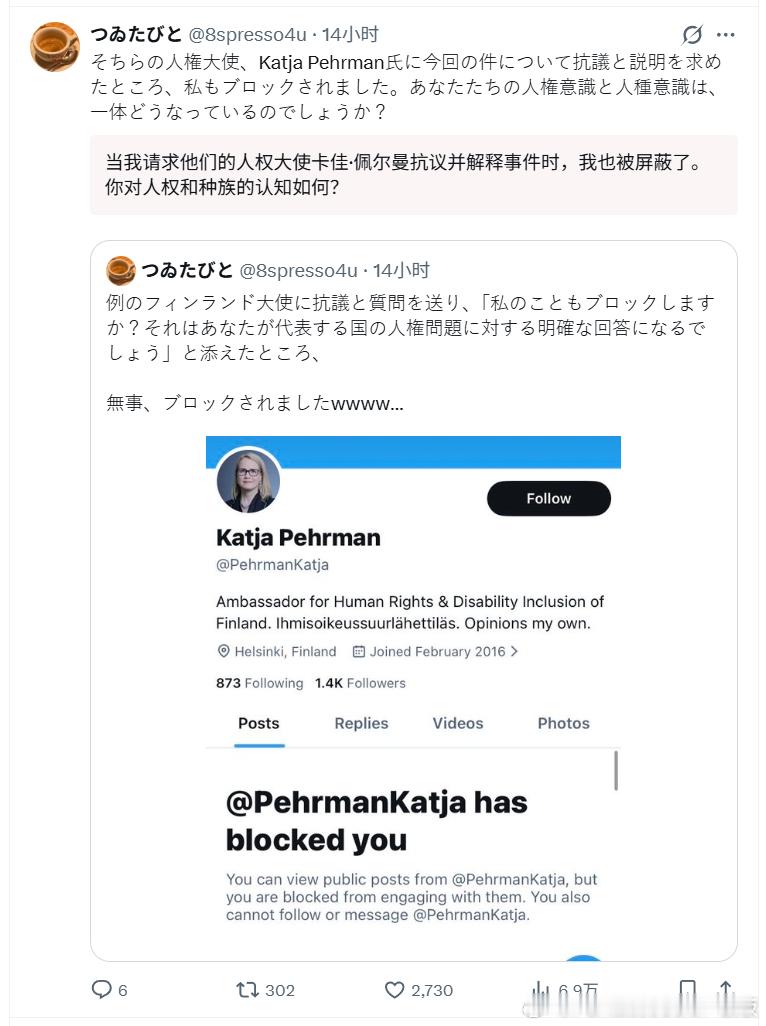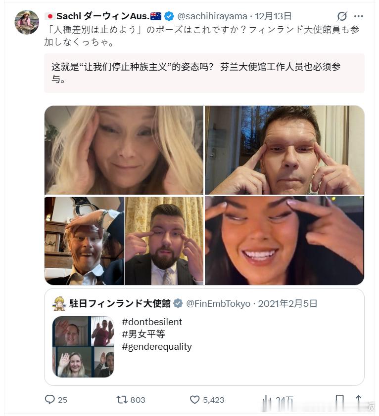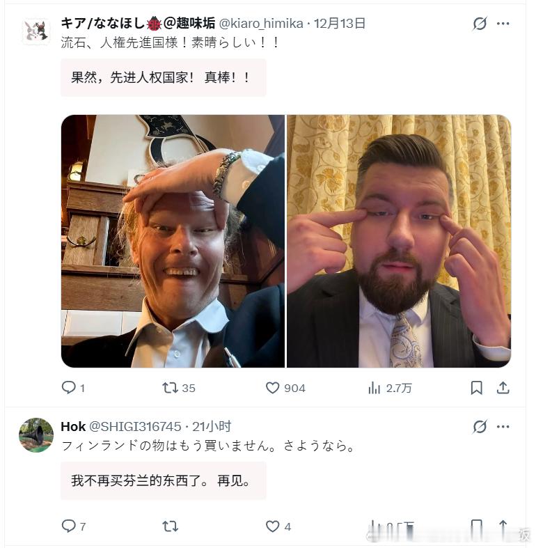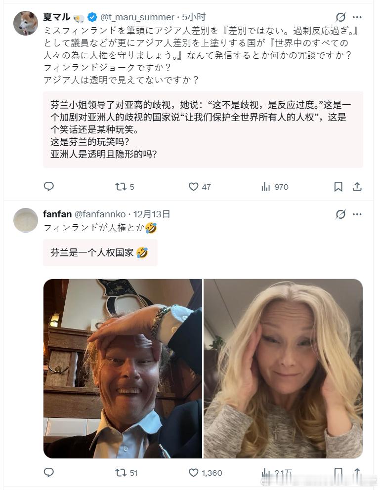 芬兰驻日大使馆发布了关于保护人权的帖子,结果评论区全是嘲讽