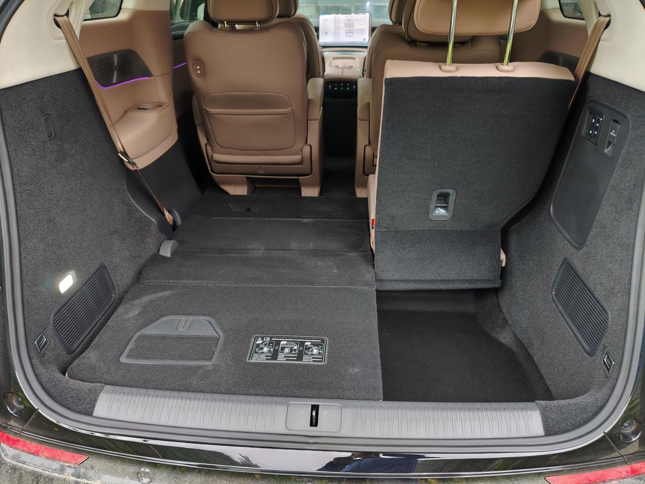 小鹏X9上的“翻转收纳”功能很强悍啊! 小鹏X9的内部空间做的不错,二三排同时坐人的情况下,距离前面椅背都有两拳的距离;后备厢空间也不小;但最大的特点是“翻转收纳”功能。 这个功能启动后,第三排的座椅可以向后方放下,跟尾箱边缘平齐,变成一个纯平空间,效果非常好,有很多可玩的场景;同时第三排座椅可以分开单独控制,分方便。