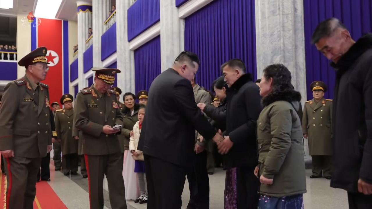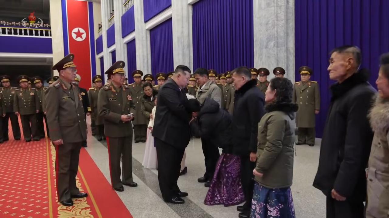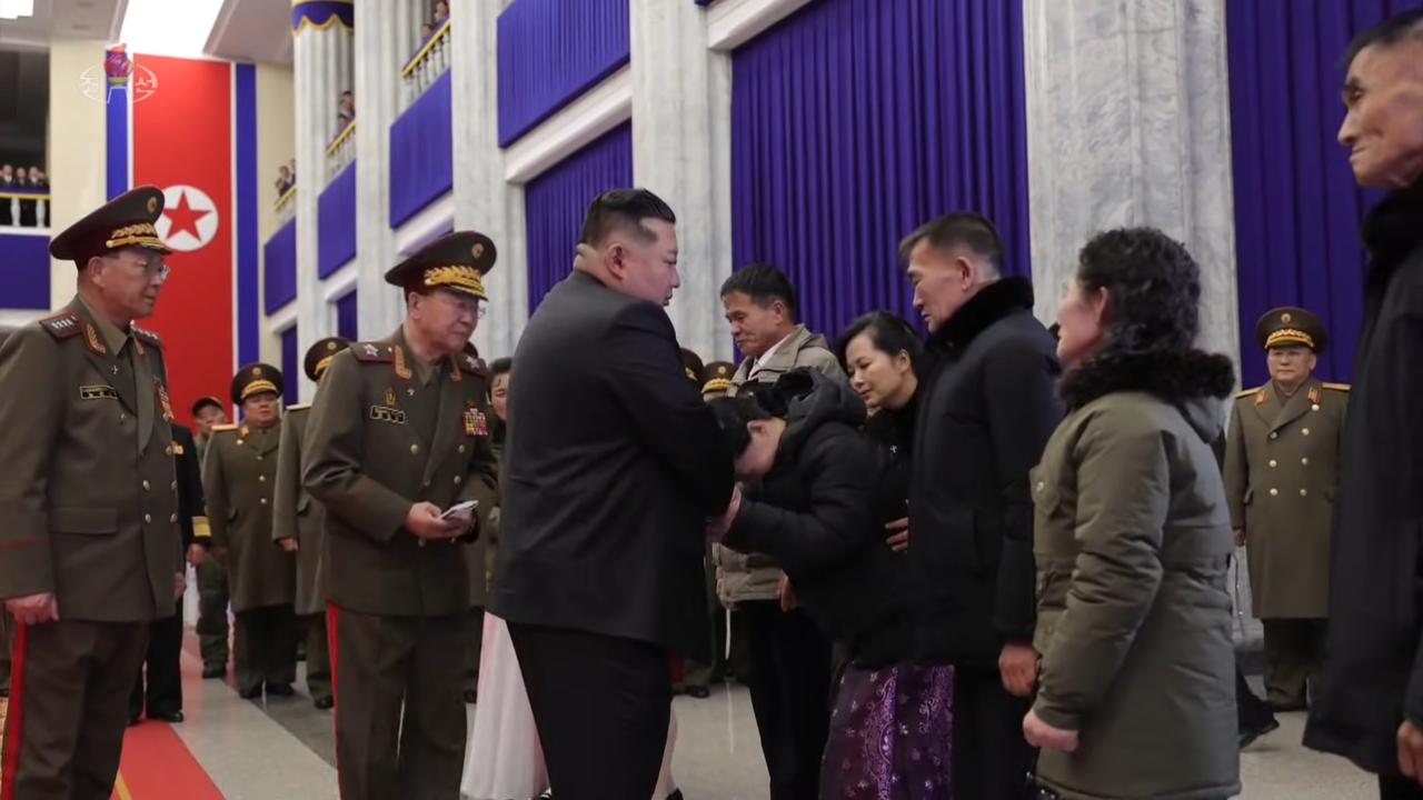 金正恩接见朝鲜第528工兵联队牺牲战士的家属时,一位家属情绪失控,玄松月不得不上前安抚