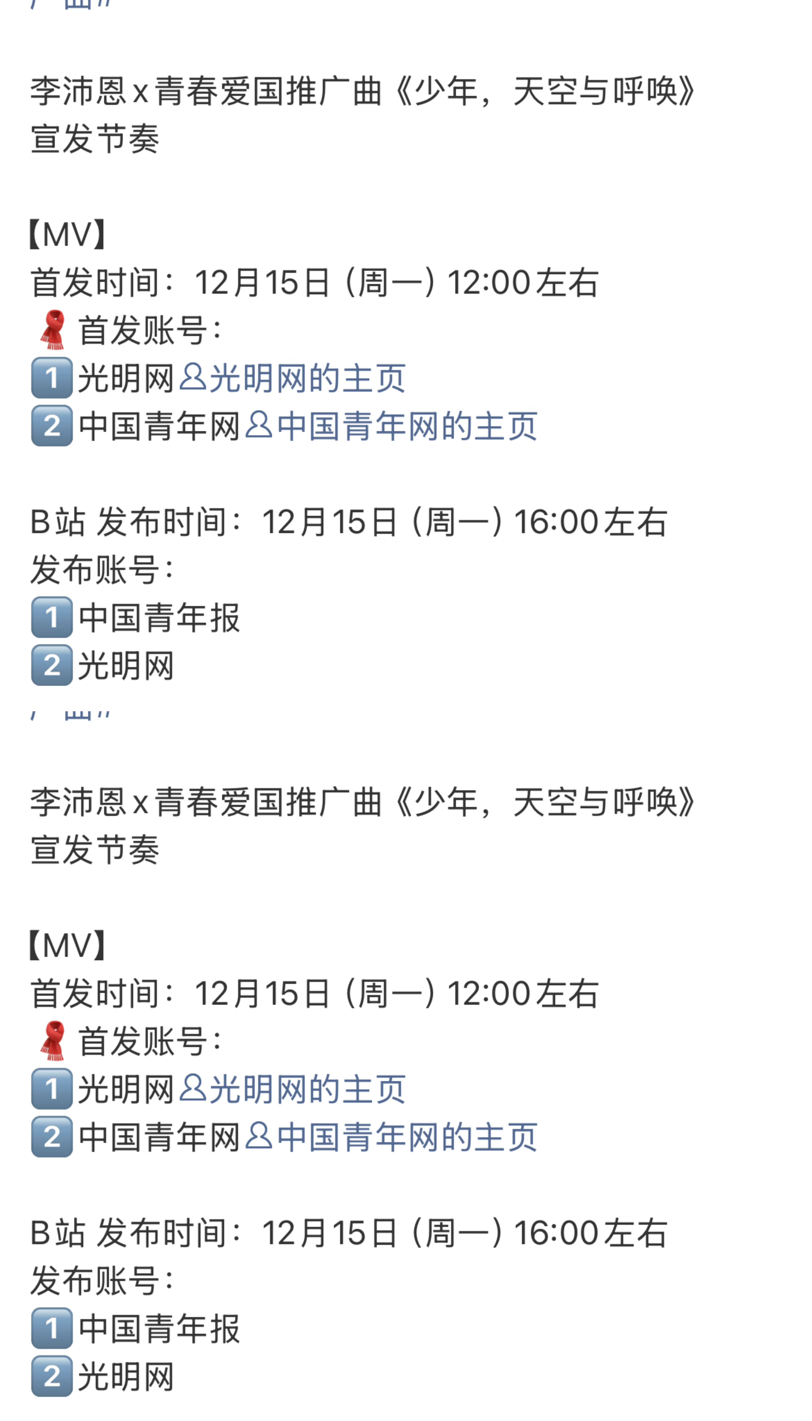 李沛恩新歌李沛恩主旋律个人新单曲《少年,天空与呼唤》明日上线。期待根正苗红的青年演员李沛恩传递正能量!