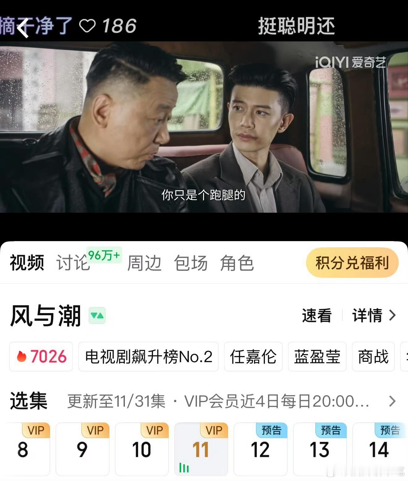 任嘉伦主演献礼剧《风与潮》复更第一天收视率创新高🔝,在无专栏的情况下热度过7000,并且还有了29S的剧情创意广告,观众继续跑步进场任嘉伦风与潮收视率