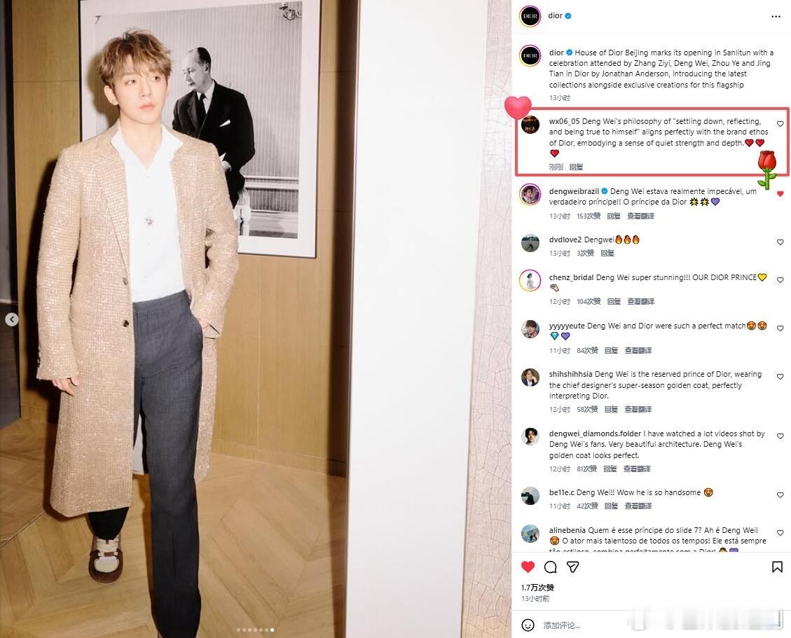 Dior认领外网邓为名字紧随章子怡之后,看得出邓为的在品牌心中的含金量。