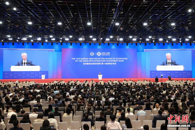 2025年6月26日,以“互联助力发展,合作共创繁荣”为主题的亚洲基础设施投资银行第十届理事会年会开幕式在北京举行,来自近100个国家和地区的3500余名嘉宾参会。图为亚投行行长金立群在开幕式上致辞。中新社记者田雨昊摄