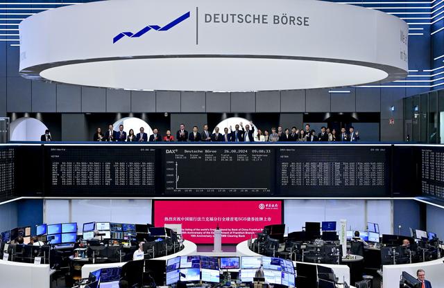 当地时间2024年8月26日,中国银行法兰克福分行SGS债券在法兰克福证券交易所上市。中新社发法兰克福证券交易所供图