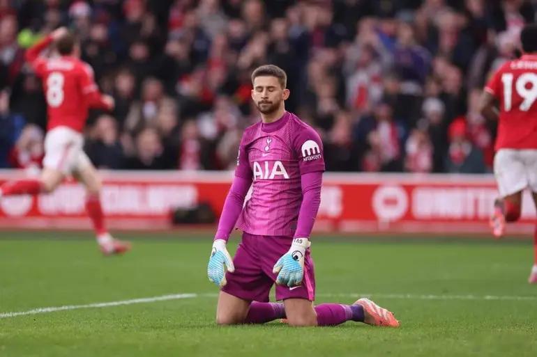 热刺 维卡里奥的这个姿势和表情,跟我周日失球后的表情差不多,责备自己,也很无奈。