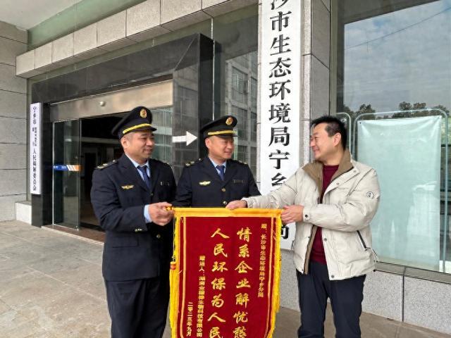 长沙晚报掌上长沙12月16日讯(全媒体记者张禹通讯员许颂坚刘梓琦)12月16日,长沙市生态环境局宁乡分局(以下简称“宁乡分局”)迎来了一位特殊的访客——湖南金箍棒生物科技有限公司的负责人陈先生,他将一面写有“情系企业解忧愁,人民环保为人民”的锦旗送到了宁乡分局工作人员手中,以此表达感谢。这一场景,成为宁乡分局优化营商环境、柔性执法的一个温暖注脚。