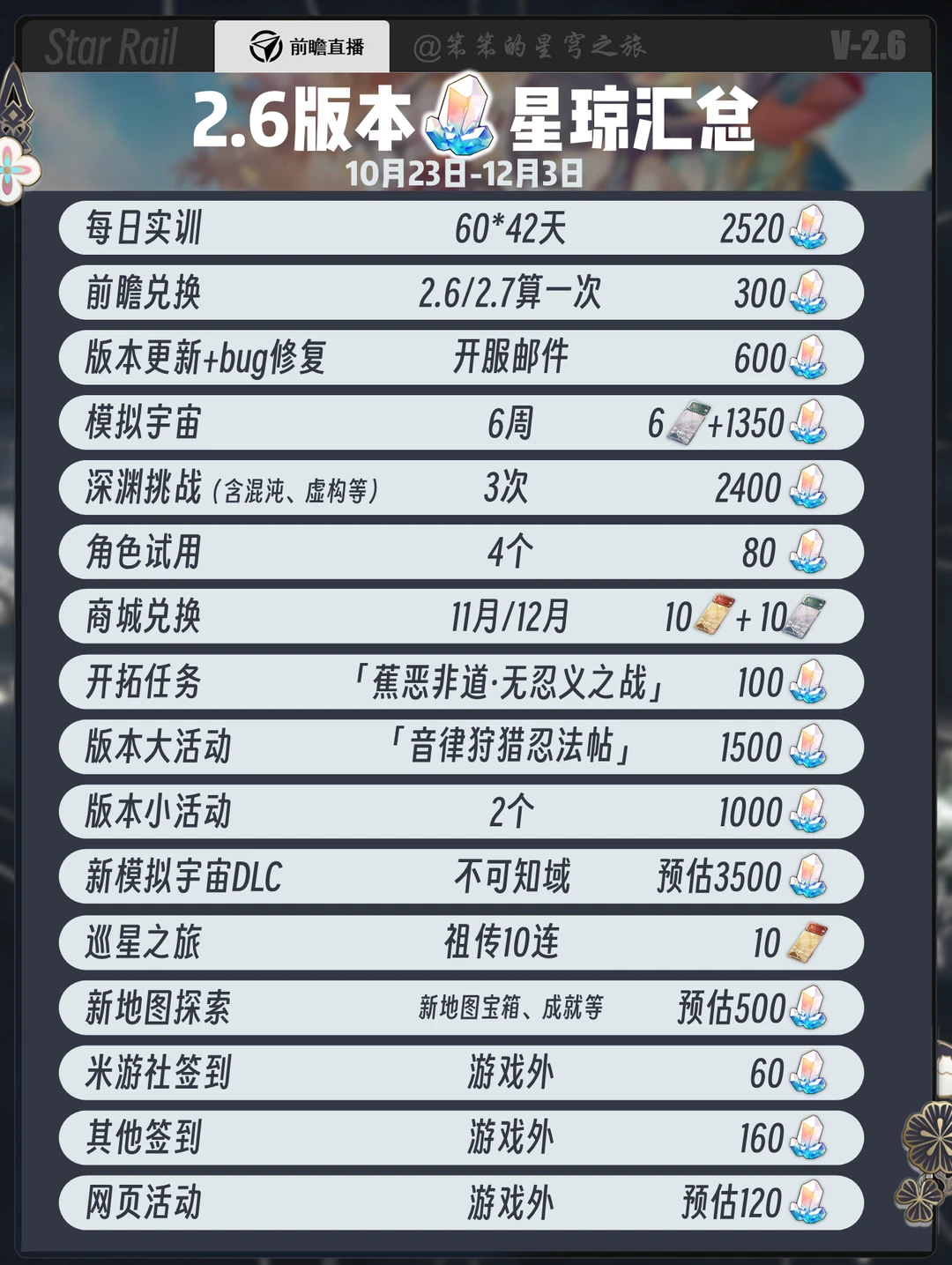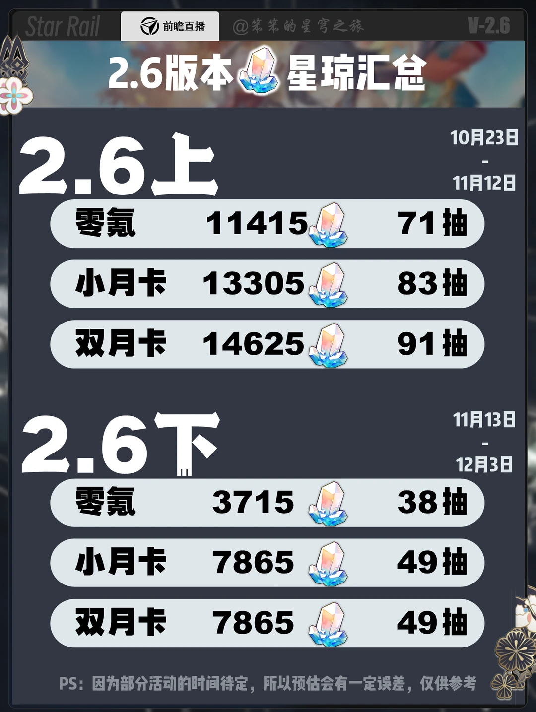 🐱大家好,我是笨笨的铲屎官 2.6版本前瞻直播来了 笨笨给大家了带来了星琼汇总 希望对你有用哦