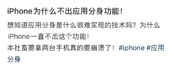 iPhone为什么不出应用分身功能 我的幽默灵感片场