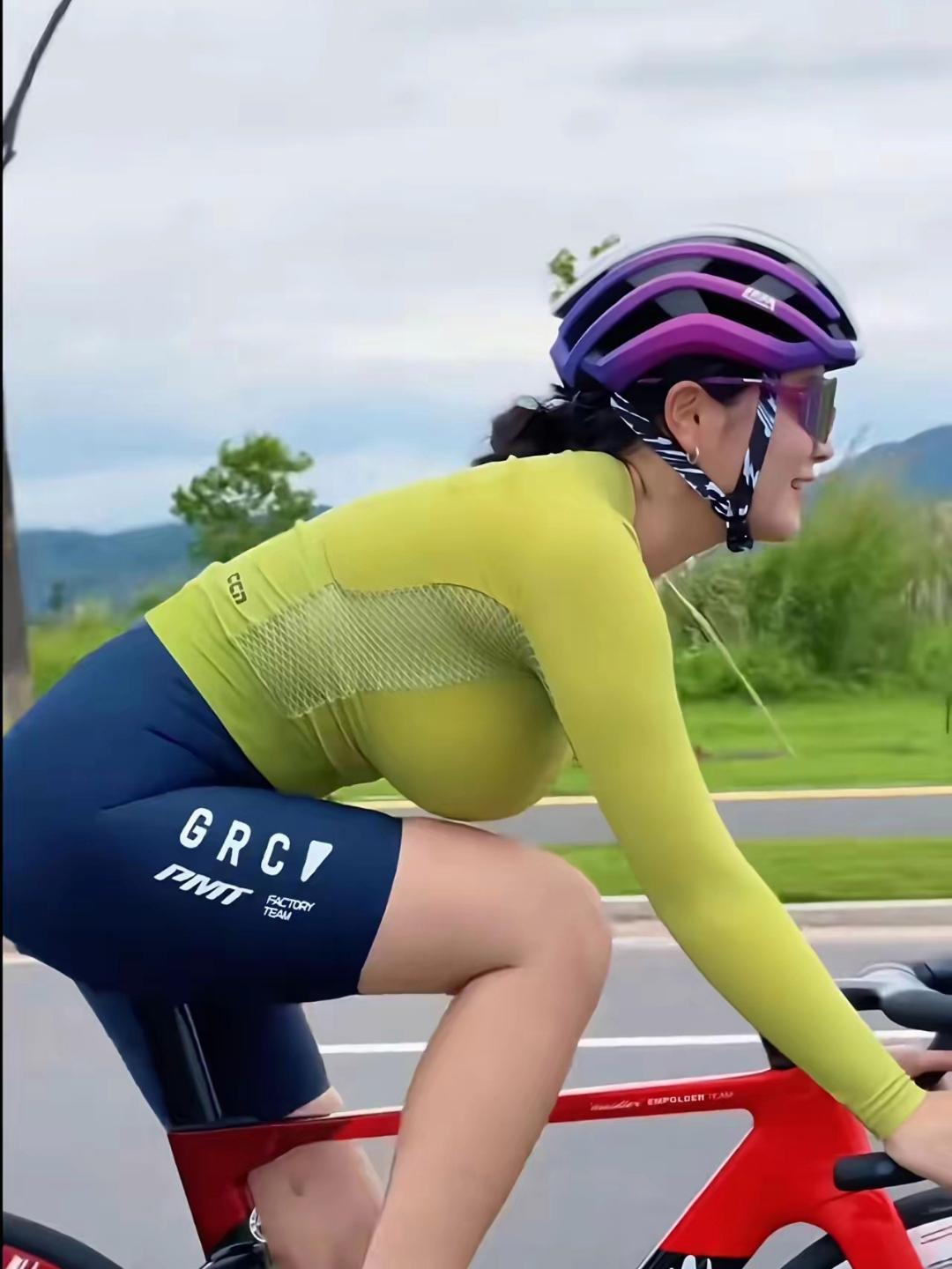 姐姐骑行时的风采太迷人!亮黄上衣贴合身姿,尽显健康活力,深蓝短裤勾勒优美腿部线条,运动中更显紧致。头戴紫黑头盔,侧颜精致,专注骑车的样子,将力量与优雅完美融合。身后青山、身前公路,她如追风精灵,动感身姿与自然相融,这充满活力的美,真叫人眼前一亮,魅力值直接拉满!