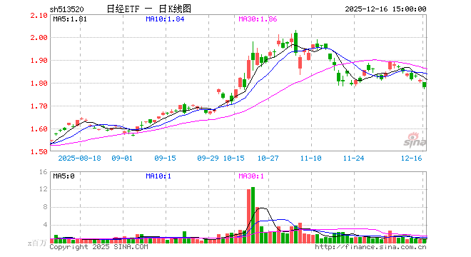12月16日,日经ETF(513520)跌1.71%,成交额1.52亿元。当日份额增加50.00万份,最新份额为9.95亿份,近20个交易日份额增加950.00万份。最新资产净值计算值为17.39亿元。