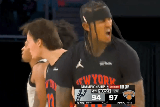 虎扑12月17日讯NBA杯决赛,尼克斯对阵马刺的比赛正在进行中。