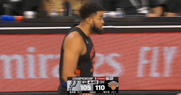 虎扑12月17日讯NBA杯决赛,尼克斯对阵马刺的比赛正在进行中。