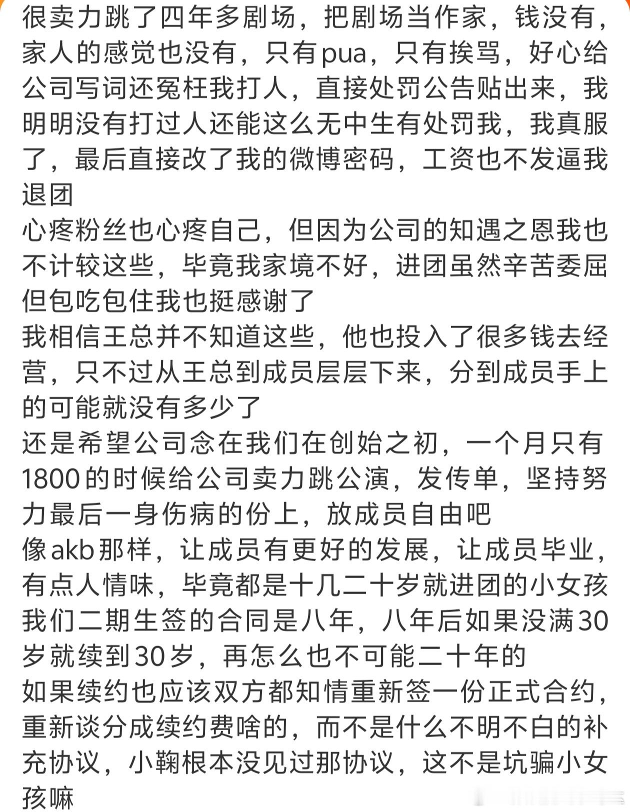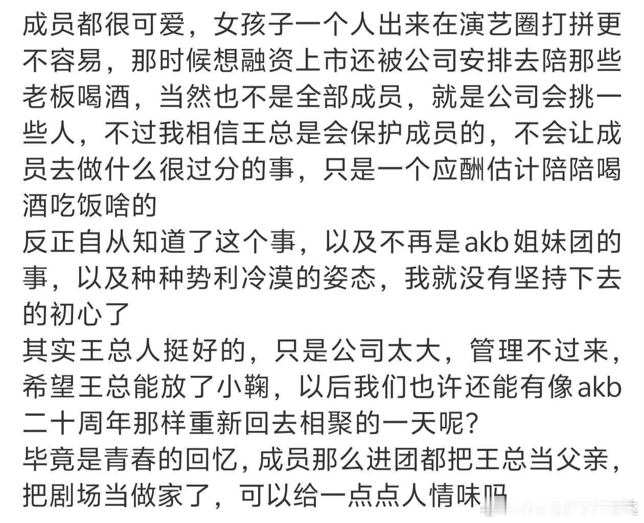 SNH48前成员曾艳芬针对丝芭与鞠婧祎的事情发表了自己的看法,而且现身说法,自己报名48后发现丝芭文化和她本人的价值观不符。同时丝芭公司对粉丝也不好,压榨粉丝的钱丝芭内部还有哪些我不知道的啊,真是越看越离谱