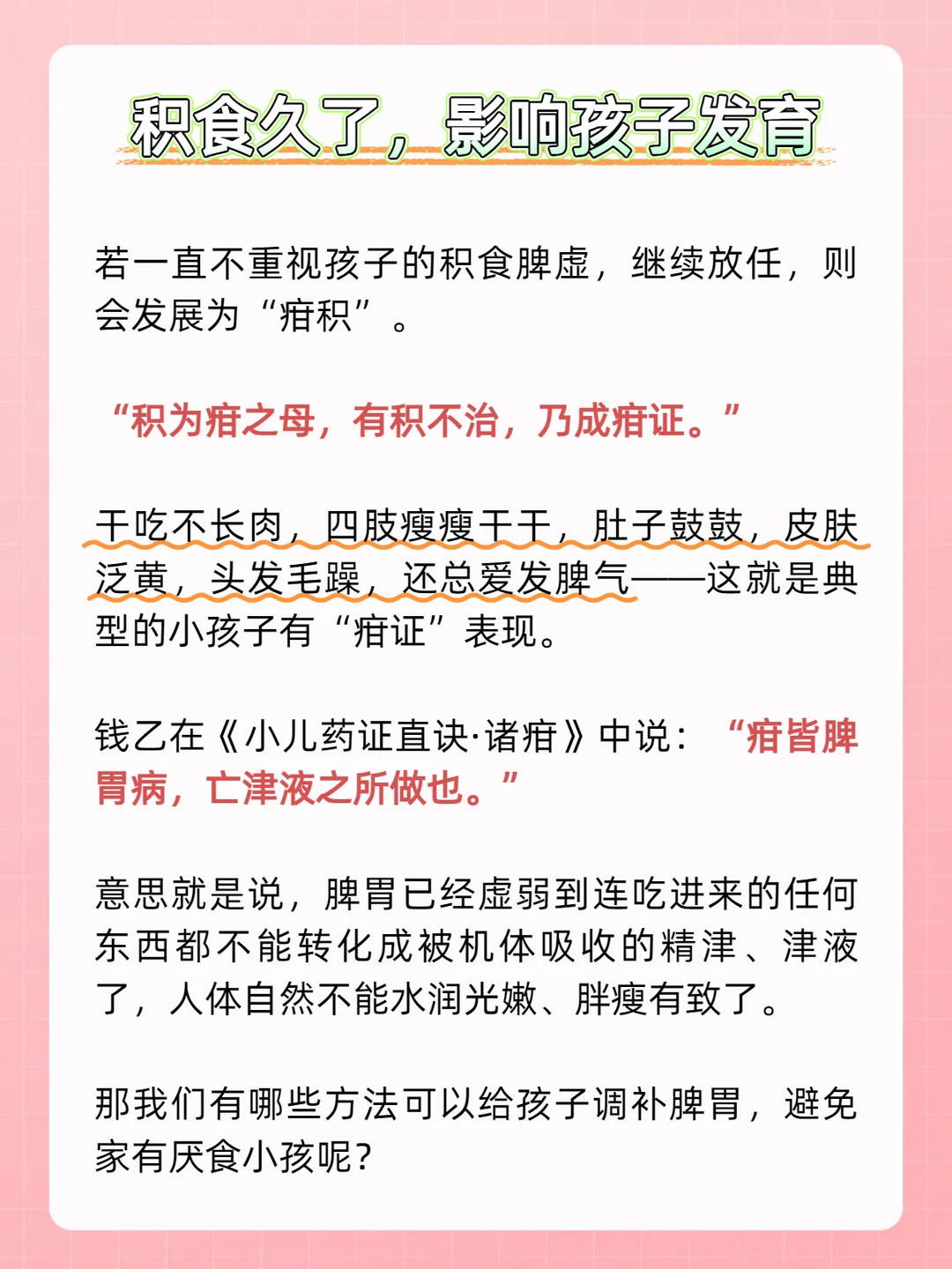 钱乙在《小儿药证直诀·诸疳》中说:“疳皆脾胃病,亡津液之所做也。”